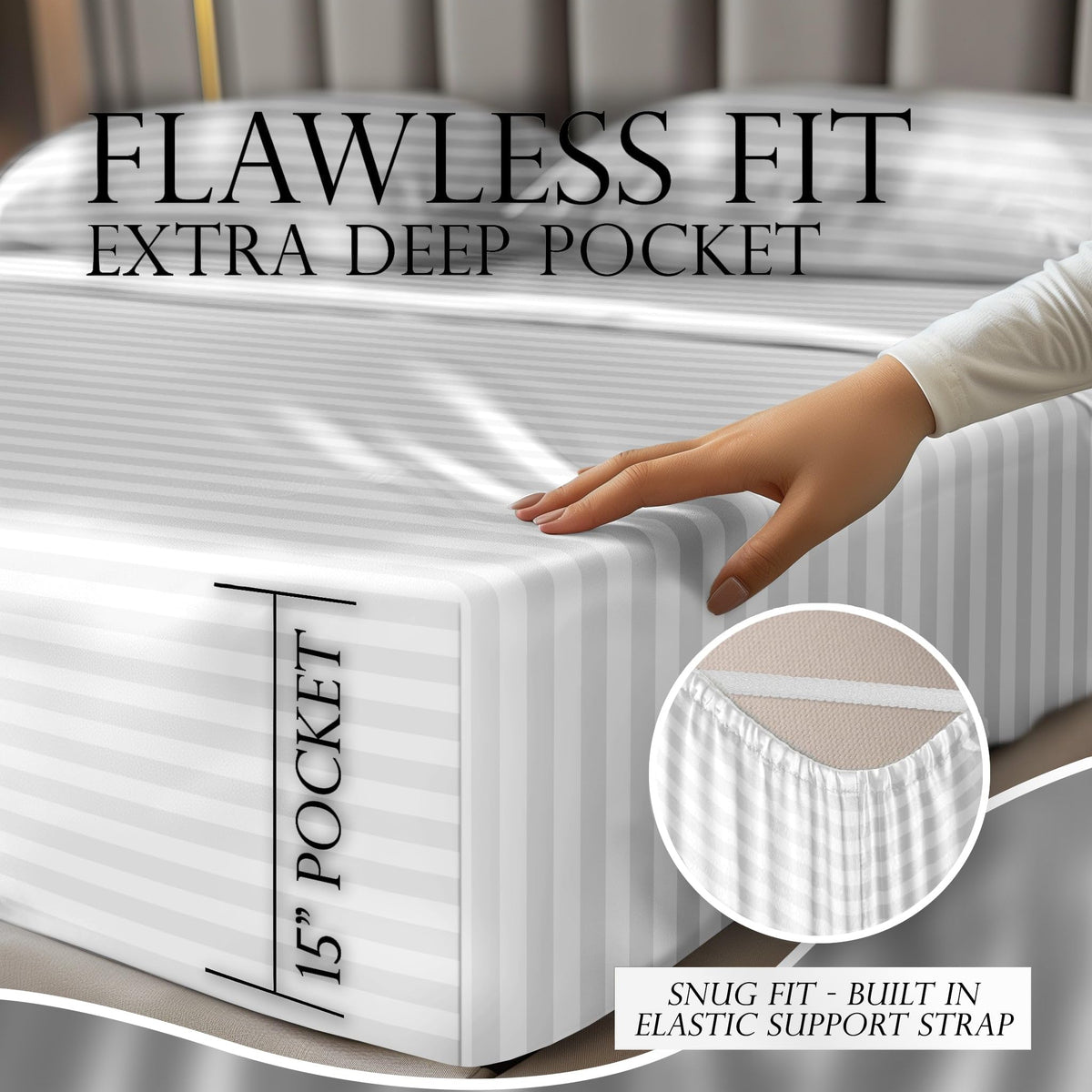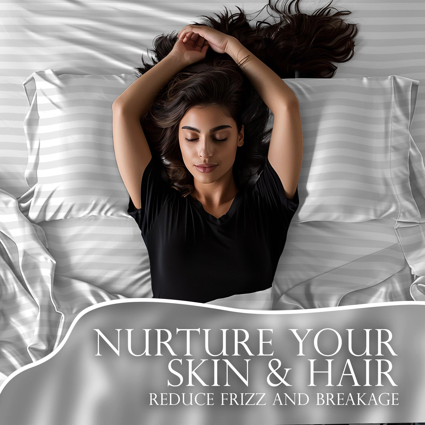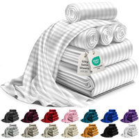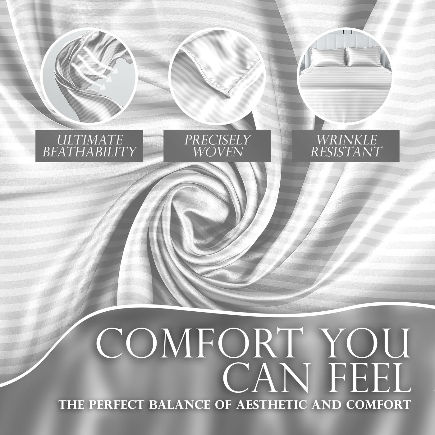 Decolure Striped Satin Sheets Set King 6Pc - Comfy Luxury Silk Feel Satin Sheets King - Elegant Silky Soft King Size Satin Bed S
