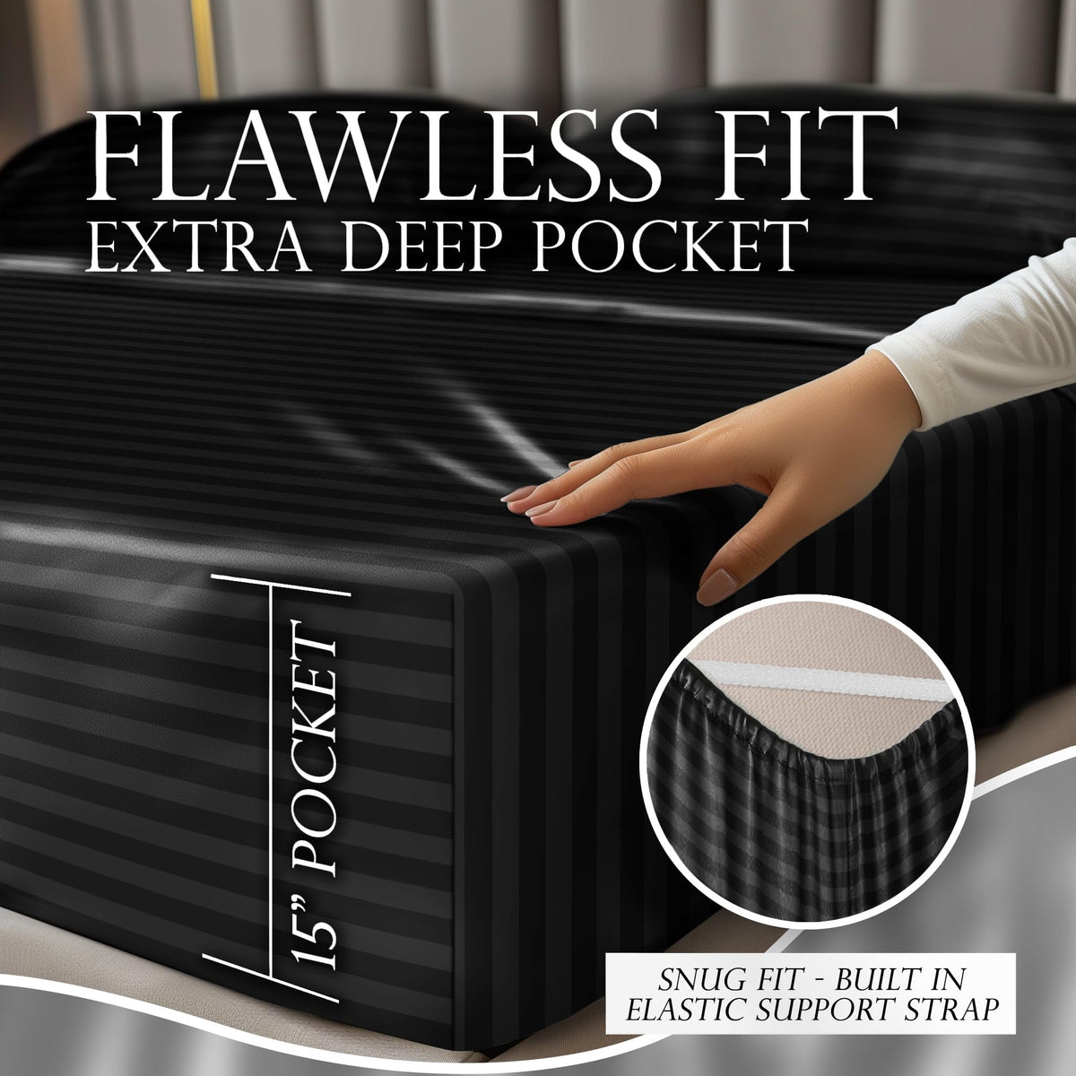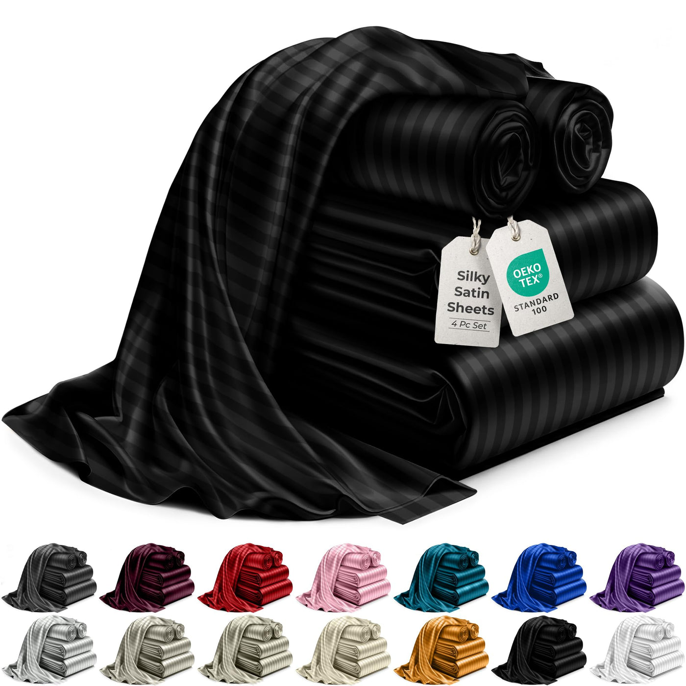 Decolure Striped Satin Sheets Twin Set 4Pc - Luxurious Silk Feel Satin Bed Sheets Twin- Elegant Silky Soft Twin Size Satin Bed S