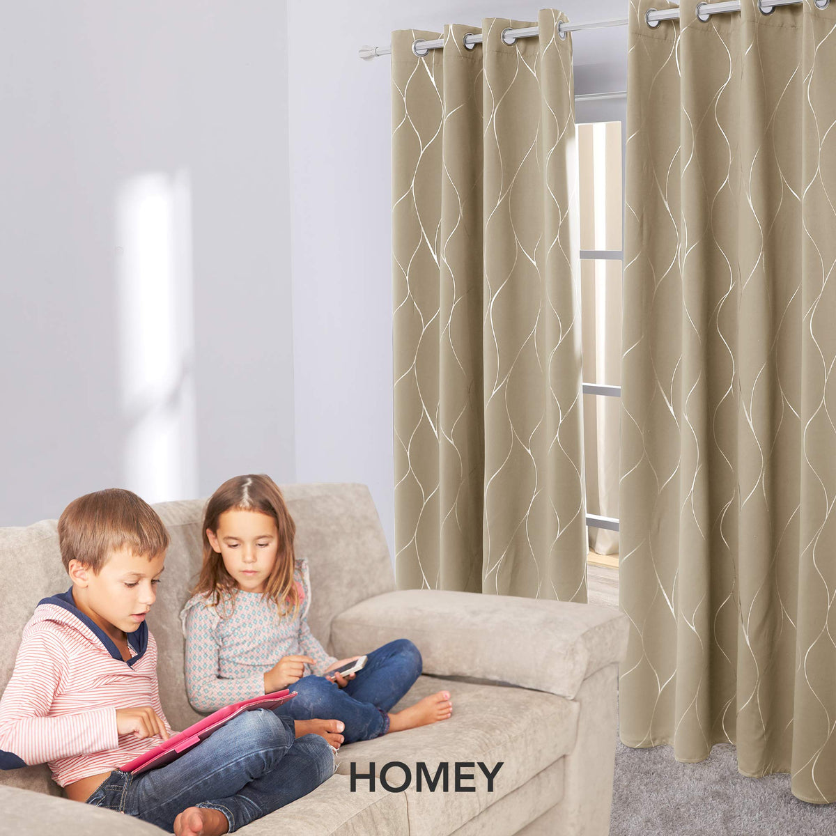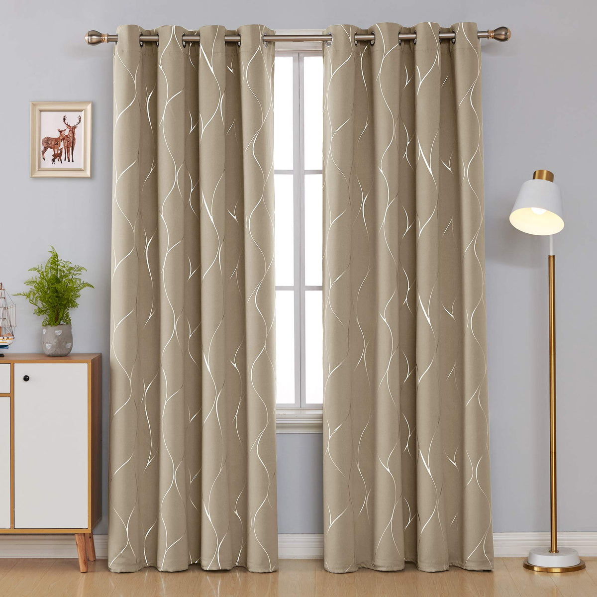 Deconovo Wave Foil Print Pattern Blackout Curtain brings a comfortable atmosphere in your home. Our blockout curtains are ideal for those who wish to have undisturbed moments indoors, for a good sleep, late work and other purposes. These curtain panels are fully crafted with 100 percent high quality polyester.