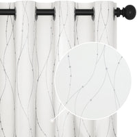 Deconovo 50% Blackout Curtains, Foil Printed Wave Line With Dots Grommet Bedroom Curtains, Pure White, 52 X 84 Inch, 2 Panels Li