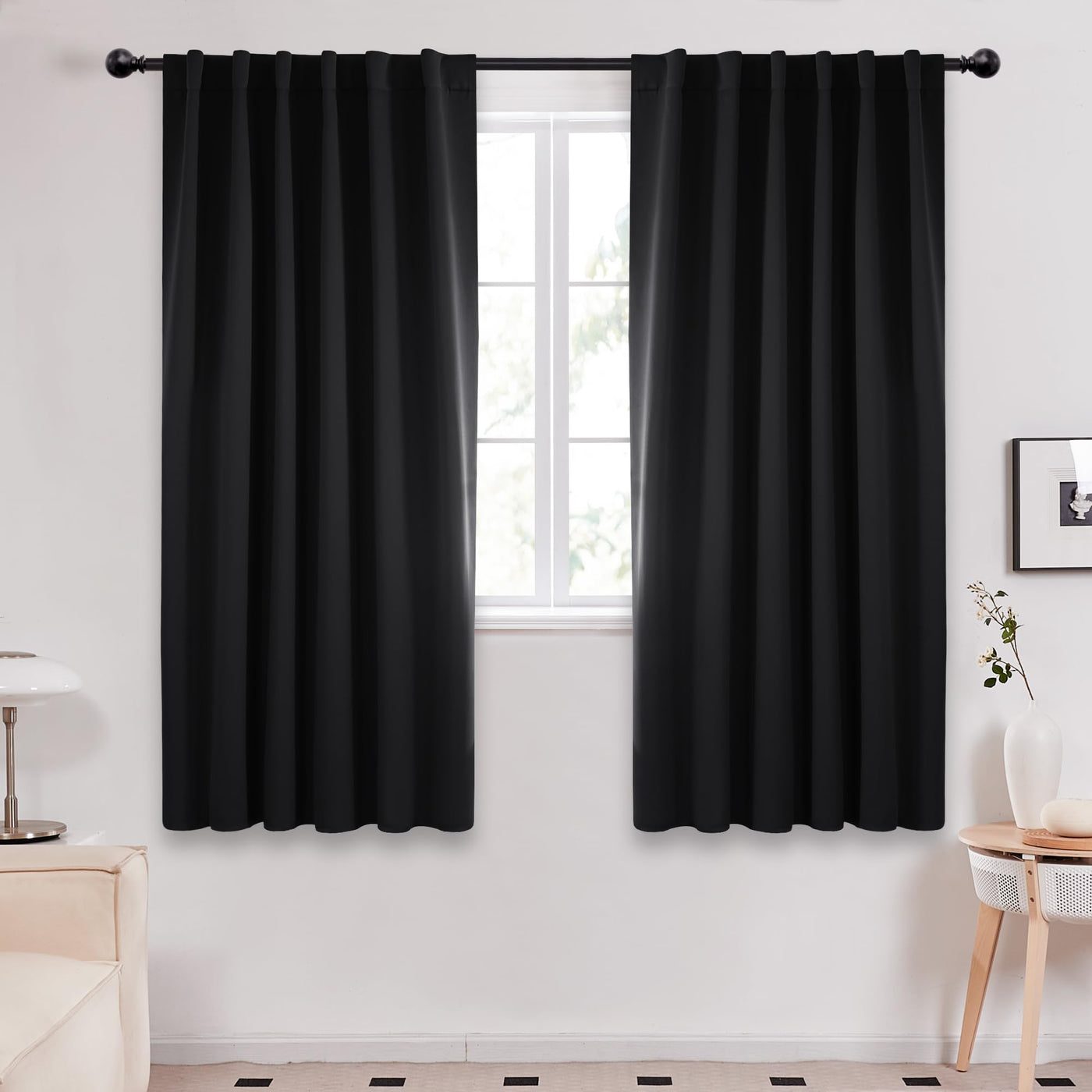 Deconovo Back Tab And Rod Pocket Blackout Curtains - (Black Color, 52X63 Inch, 2 Panles), Thermal Insulated Blackout Curtains Fo