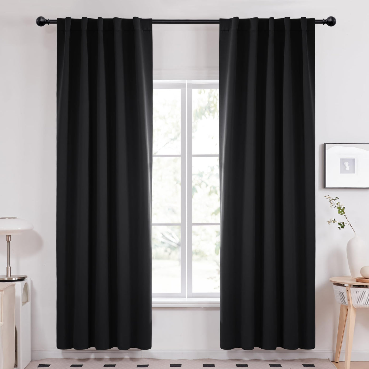 Deconovo Back Tab And Rod Pocket Blackout Curtains For Living Room - (42X84 Inch, Black, 2 Panels), Thermal Insulated Light Bloc