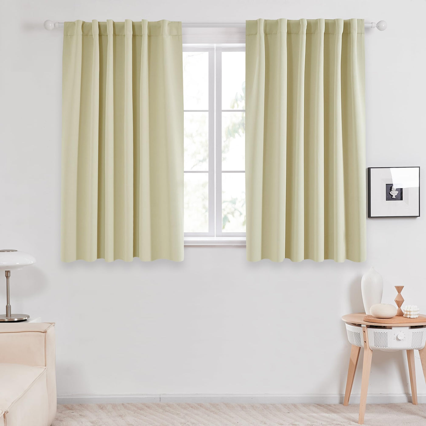 Deconovo Beige Blackout Curtains For Kitchen Window, Back Tab And Rod Pocket Blackout Curtains, Room Darkening Curtains 52X45 Inch Beige 2 Panels