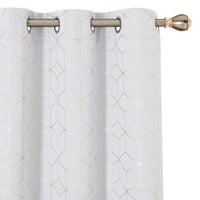 Deconovo Blackout Curtain Golden Diamond Foil Print Grommet Curtains, 42W X 84L Inch, Light Blocking Window Drapes Living Room,