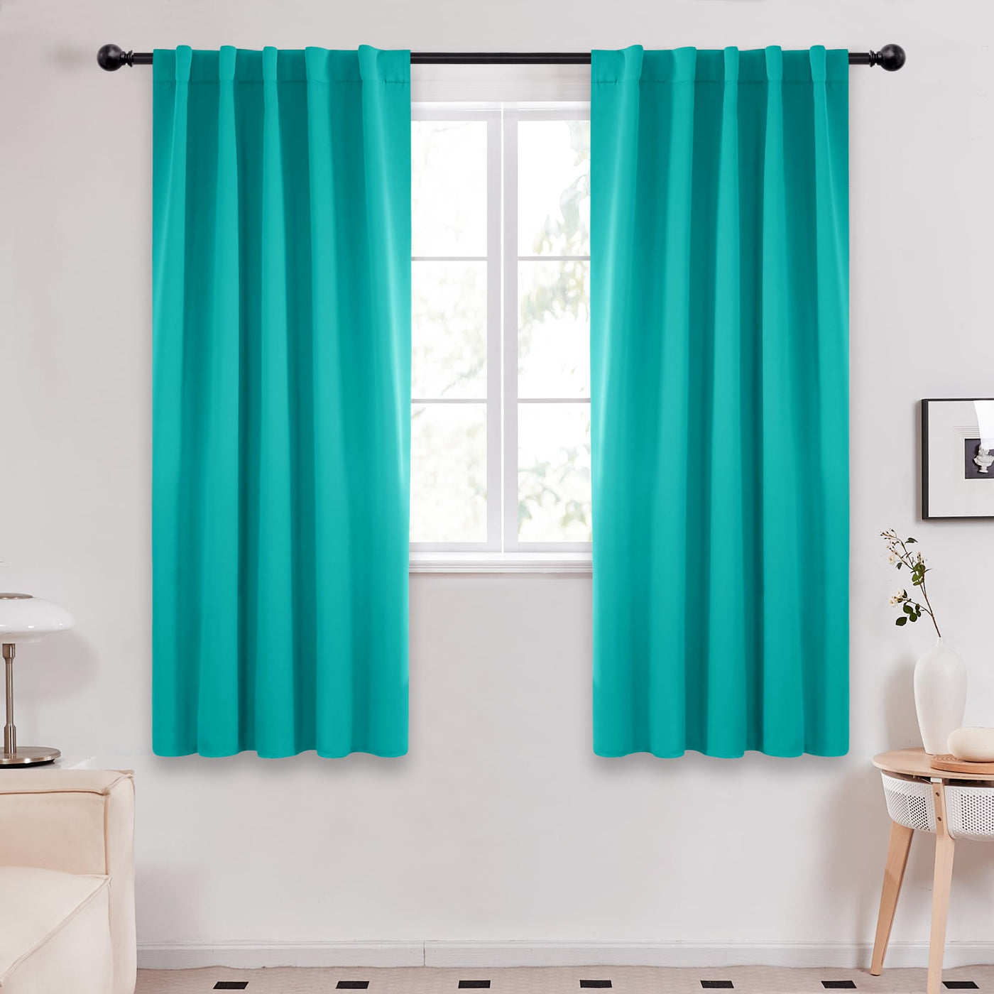 Deconovo Blackout Curtain Panels For Bedroom, Room Darkening Back Tab And Rod Pocket Curtains, 42X72 Inch, Turquoise, 2 Panels