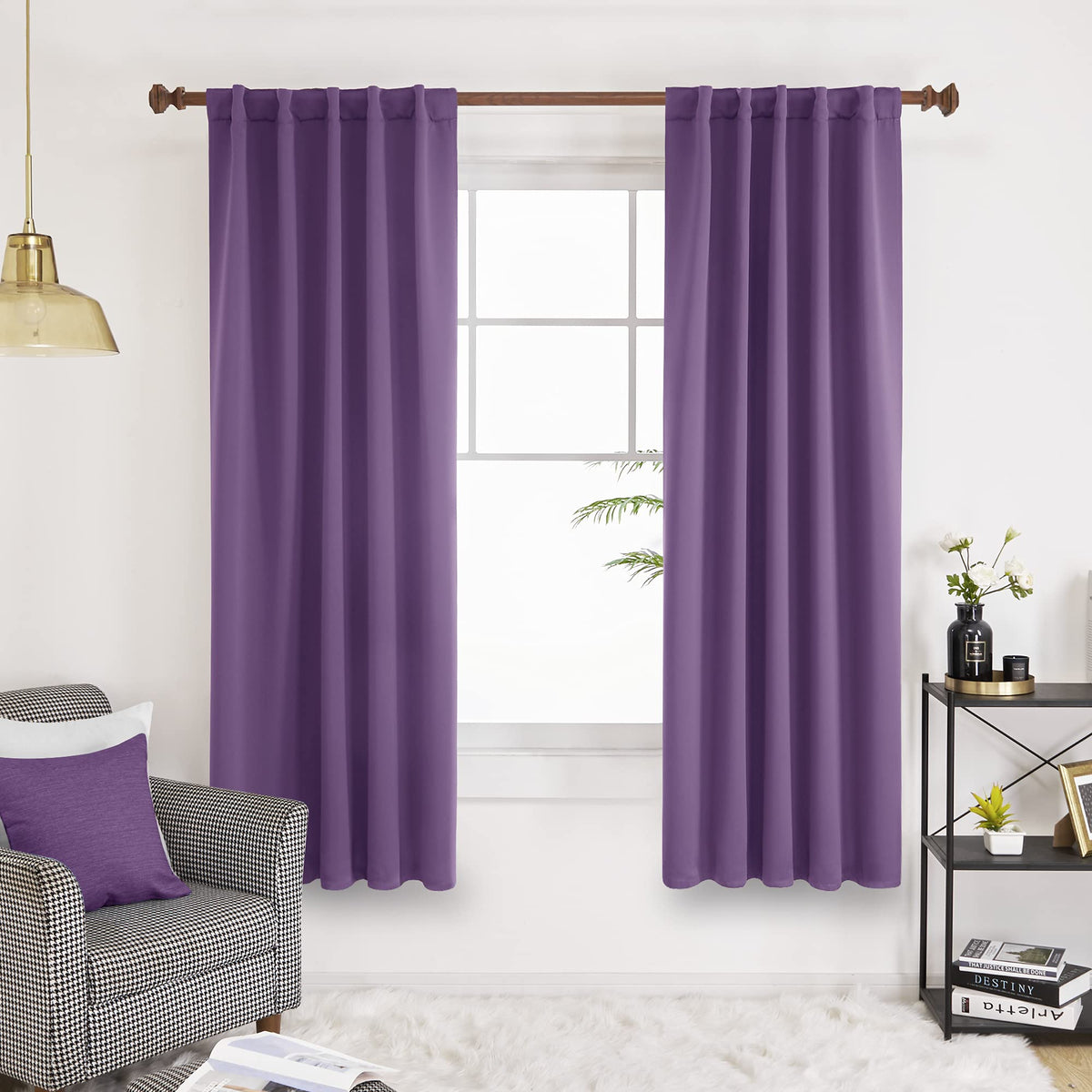 Deconovo Blackout Curtain Panels For Kids Bedroom - 42X72 Inch, Purple Grape, 2 Panels, Room Darkening Back Tab And Rod Pocket Curtains