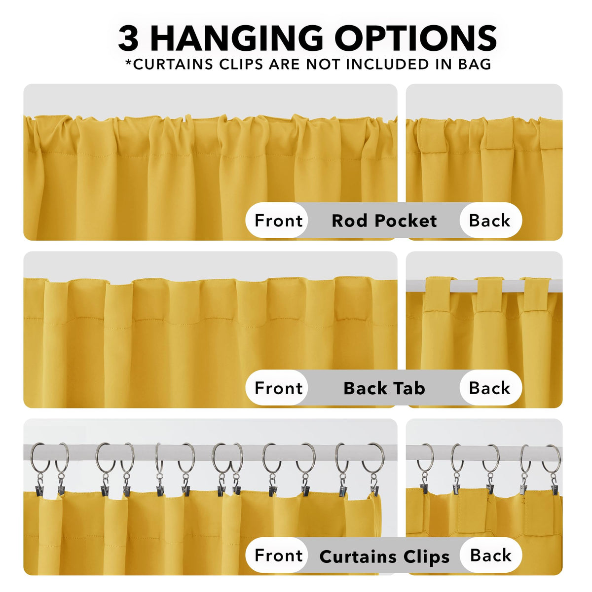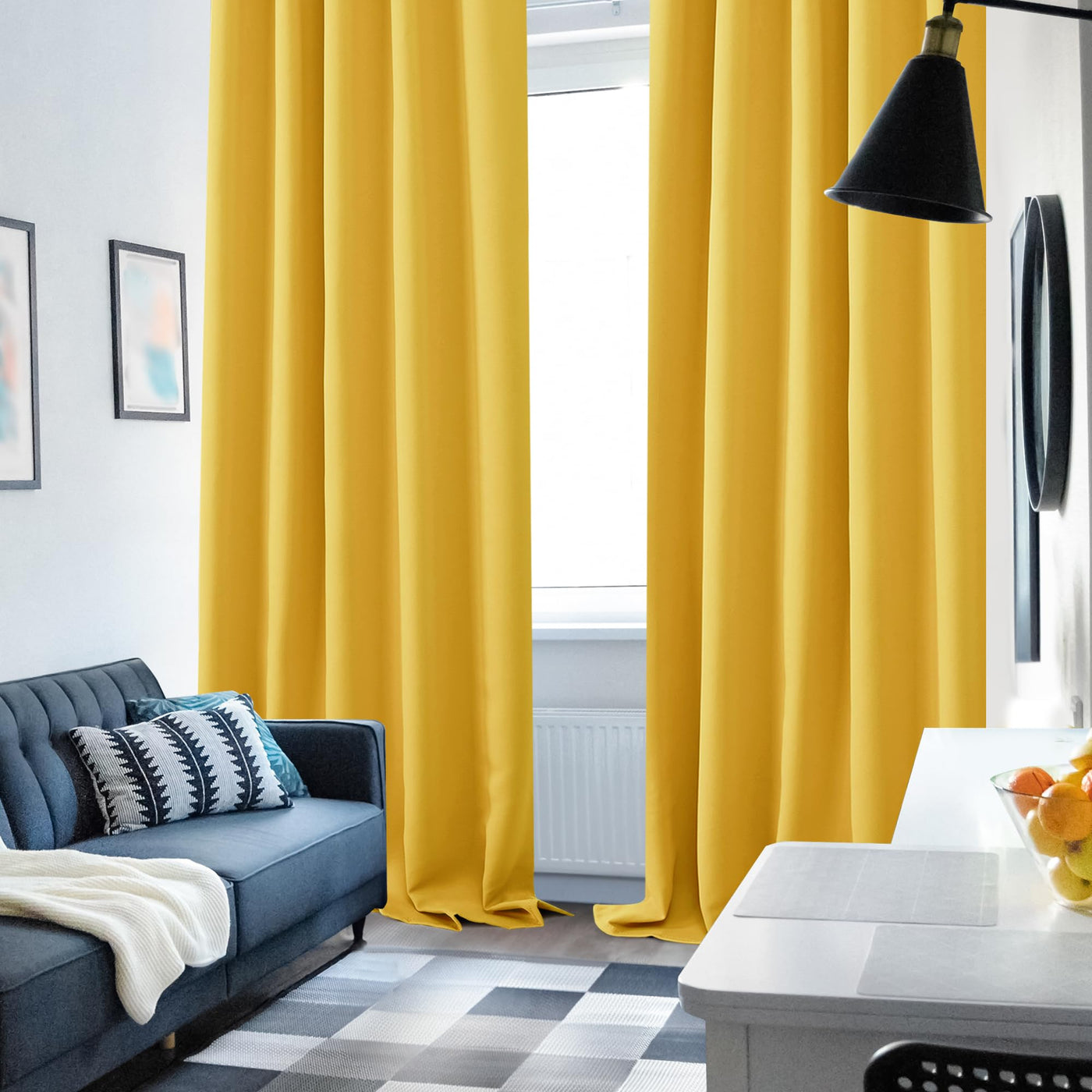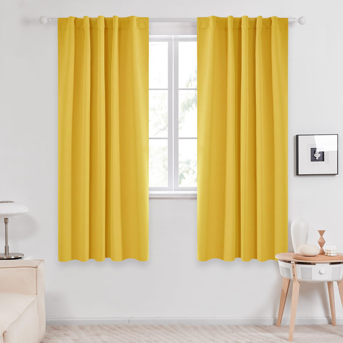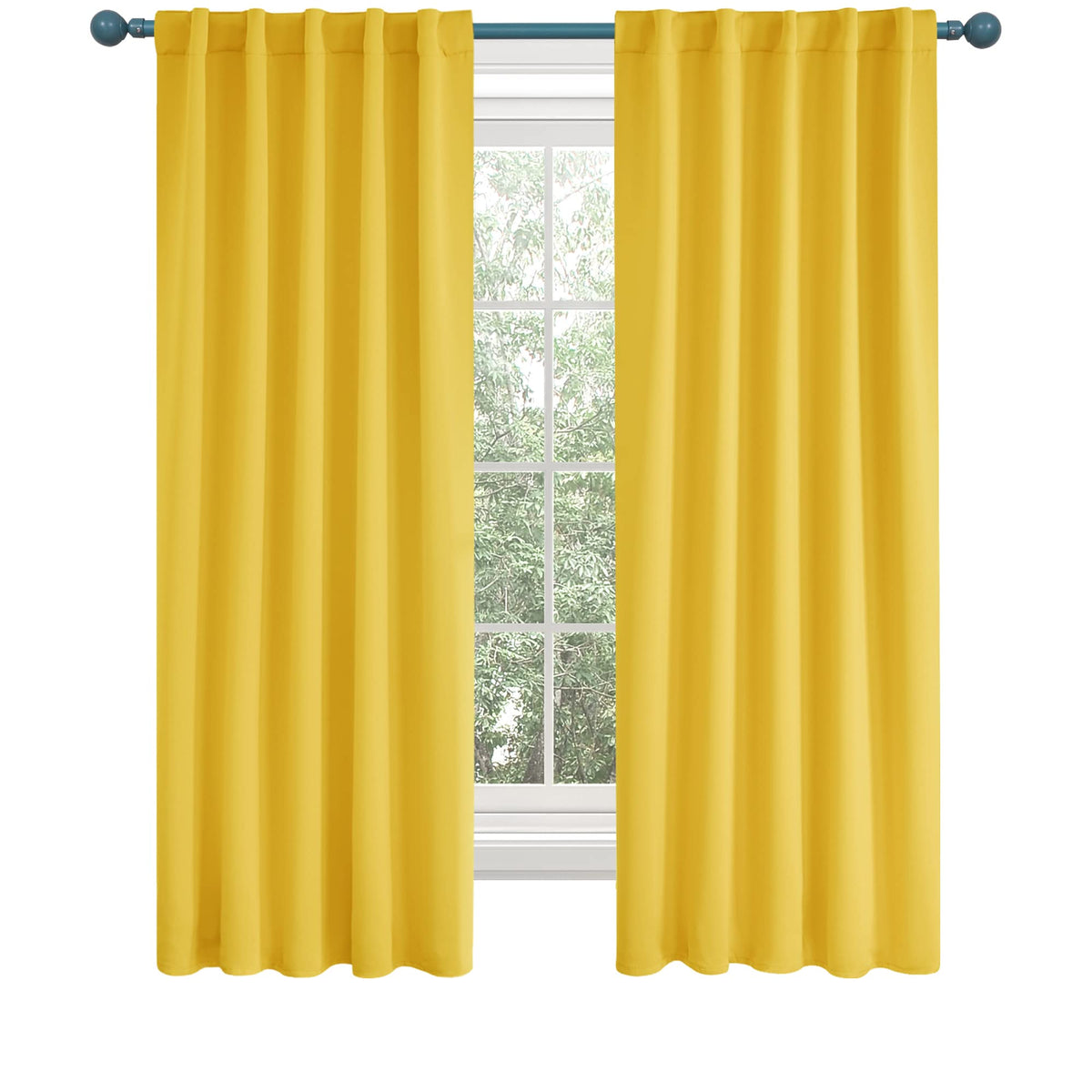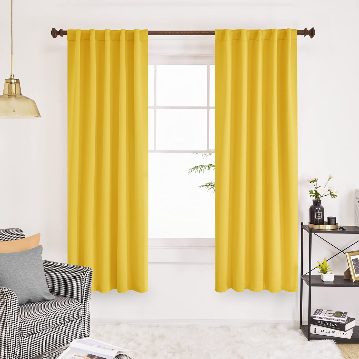 Deconovo Blackout Curtain Panels For Kids Bedroom - Room Darkening Back Tab And Rod Pocket Curtains, 42X72 Inch, Mellow Yellow, 2 Panels
