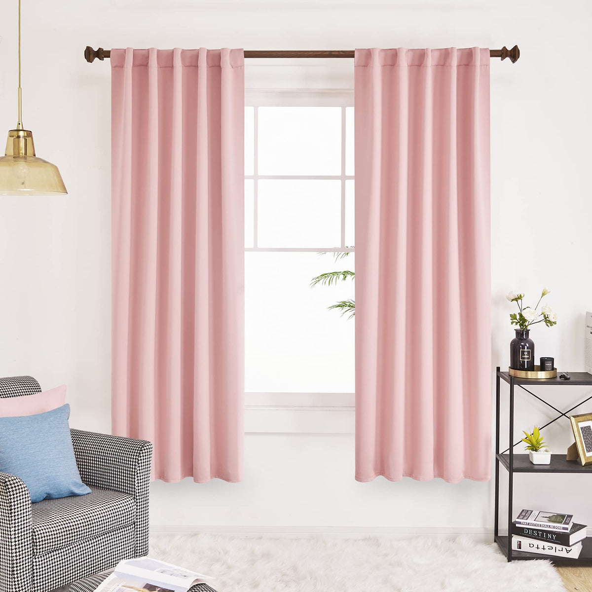 Deconovo Blackout Curtain Panels For Kids Bedroom - Room Darkening Thermal Insulated Back Tab And Rod Pocket Curtains, 42X72 Inch, Coral Pink, 2 Panels