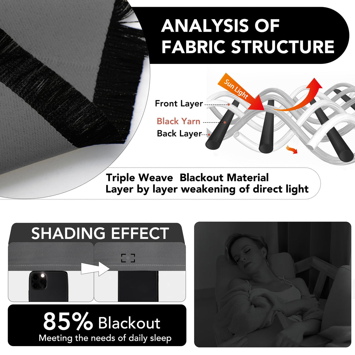 Beautifully accent the style of your room with Deconovo blackout curtains, while shielding your delicate furniture from light damages. Our draperies are fashioned from 100 percent premium quality polyester fabric using the triple weave innovative technology. These opaque curtains will make you enjoy a peaceful and dark room after a busy day or particularly hot one, as they can create a perfect meditative atmosphere in big or small rooms.