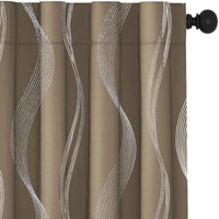Product Description: :The Wave-Inspired Pattern Adds An Organic Touch To Your Room, Bringing Warmth And Comfort To Your Home. Silver Foil Printing Technology Adds A Shiny Metallic Finish That Reflects Light Beautifully, Giving Your Room A Brighter Look And Feel. Blackout Curtains Are Made With A Three-Layered Woven Construction, Including A High-Density Black Layer That Effectively Blocks 80-95% Of Light. This Not Only Provides You With A Nearly Pitch-Black Sleeping Environment, But Also Adds Excellent Thermal Insulation, Reducing Heat Loss In Winter And Keeping You Cool In Summer. Additionally, The Window Curtains Help Reduce Noise Levels For A More Peaceful Atmosphere. With Three Different Hanging Options Including Back Tab, Rod Pocket, Or Curtain Clip, Our Drapes Can Be Hung In Any Room, Like Bedroom, Living Room, Dining Room, Baby'S Nursery, Kids Room, Home Office, Home Theater, Guest Room, Kitchen, Game Room, Regardless Of The Decor Style. The Curtains Are Perfect For Modern, Minimalist, Vintage, Clean, Cottage, Bohome, Farmhouse, French, Retro American, Chinese, And Other Design Styles. Our Curtains Come In A Set Of Two To Fit Most Standard Windows. Update Your Home Decor And Create A Cozy, Intimate Atmosphere Today With Deconovo Silver Foil Printed Blackout Curtains.