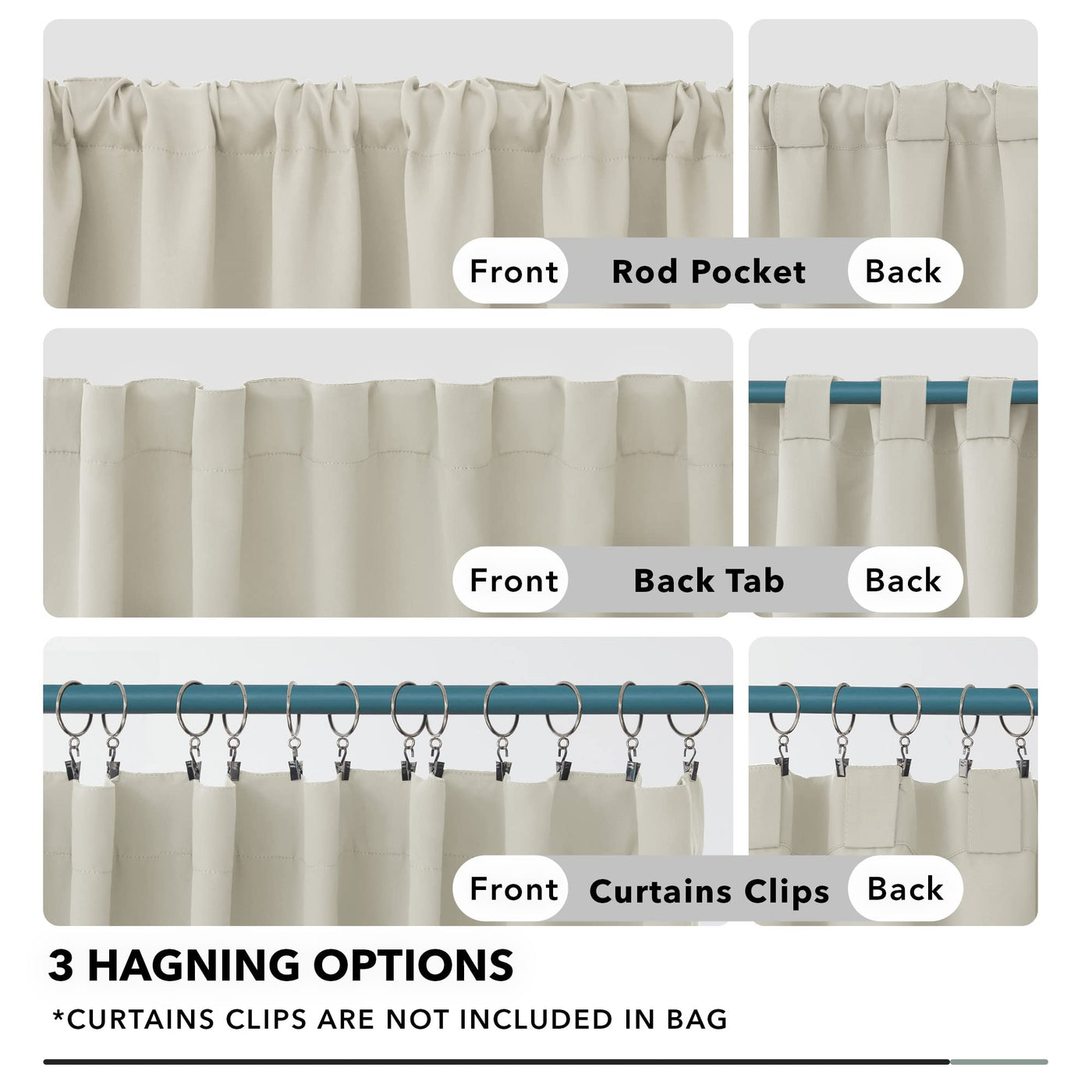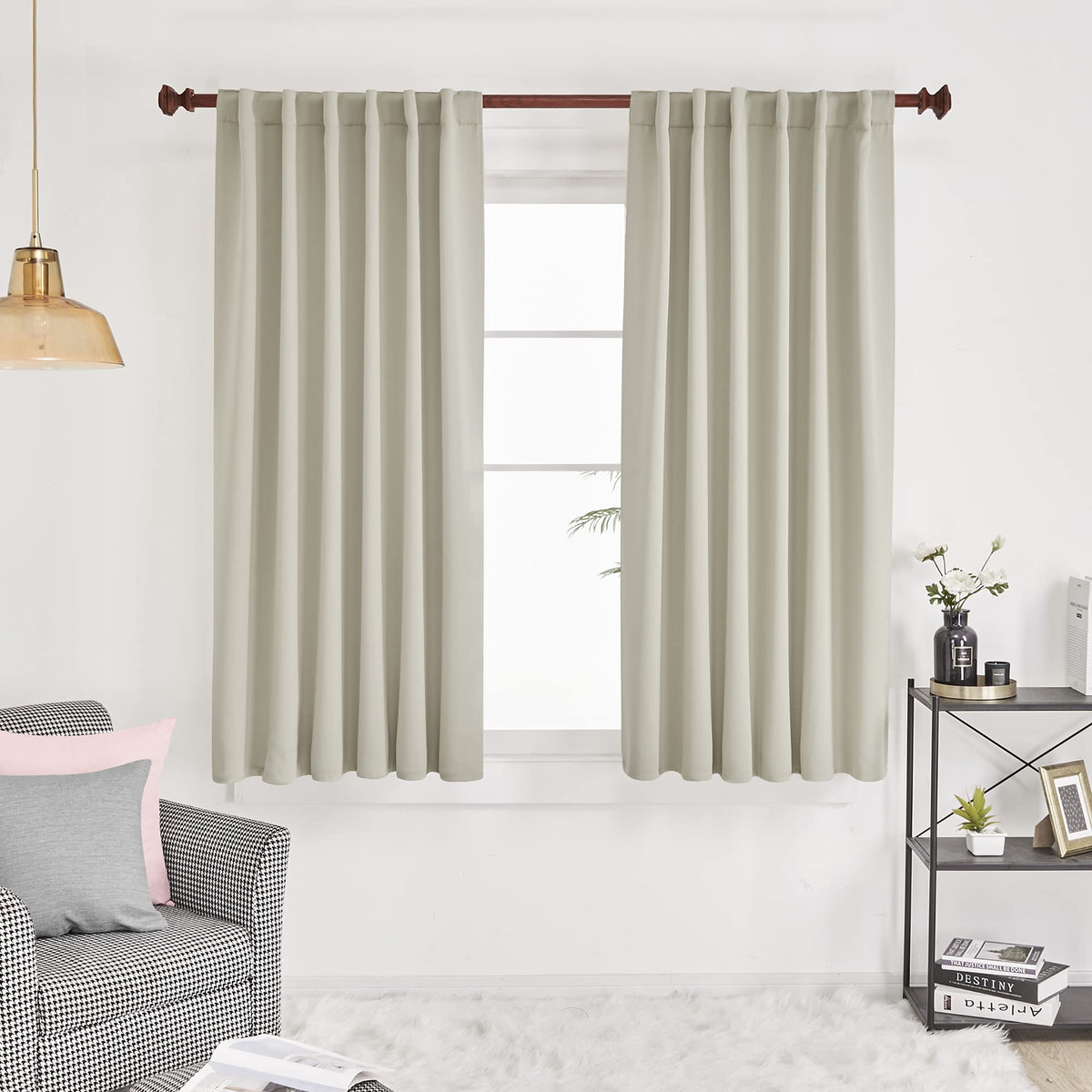 Deconovo Blackout Curtains For Kitchen Window, Back Tab And Rod Pocket Curtains, Room Darkening Curtains, 52X45 Inch, Light Beige, 2 Panels