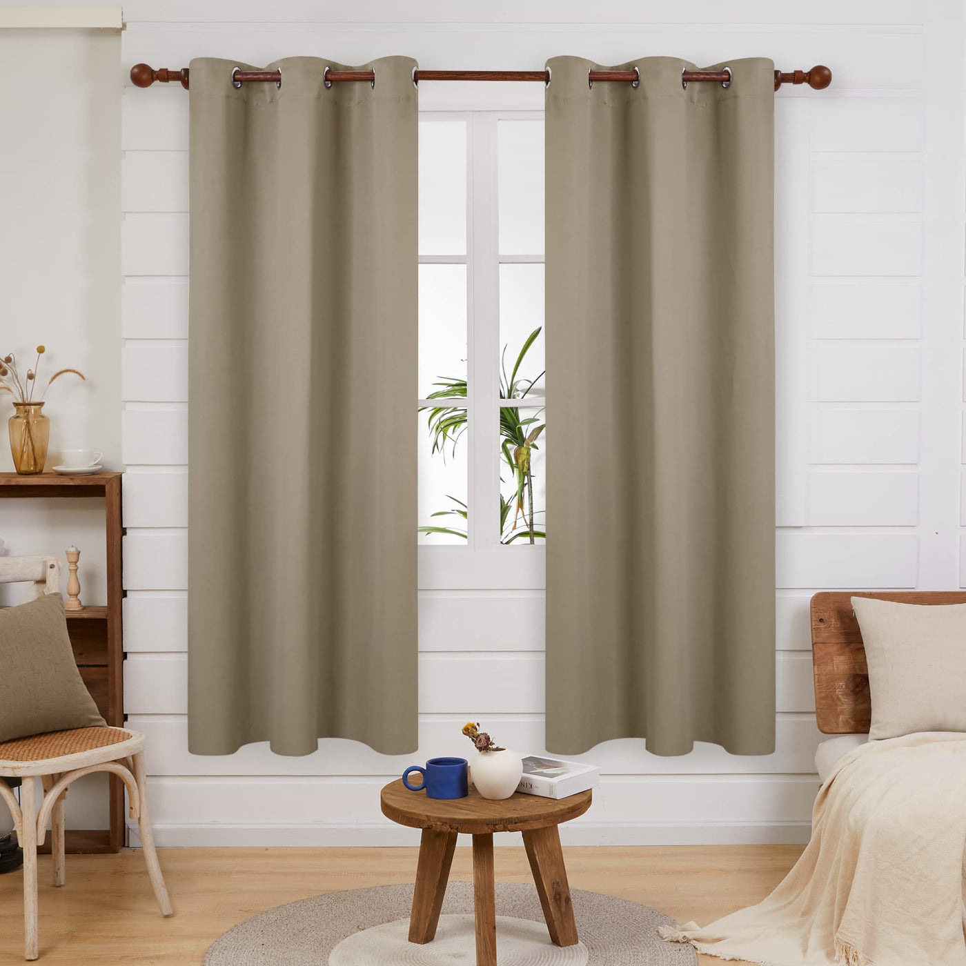 Deconovo Blackout Curtains, Khaki Living Room Curtain, Thermal Insulated Grommet Short Drapes For Bedroom, 38 X 72 Inch, 2 Panels