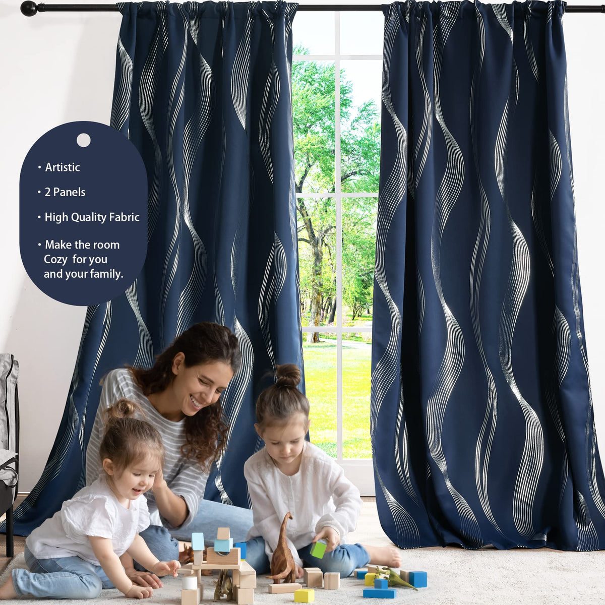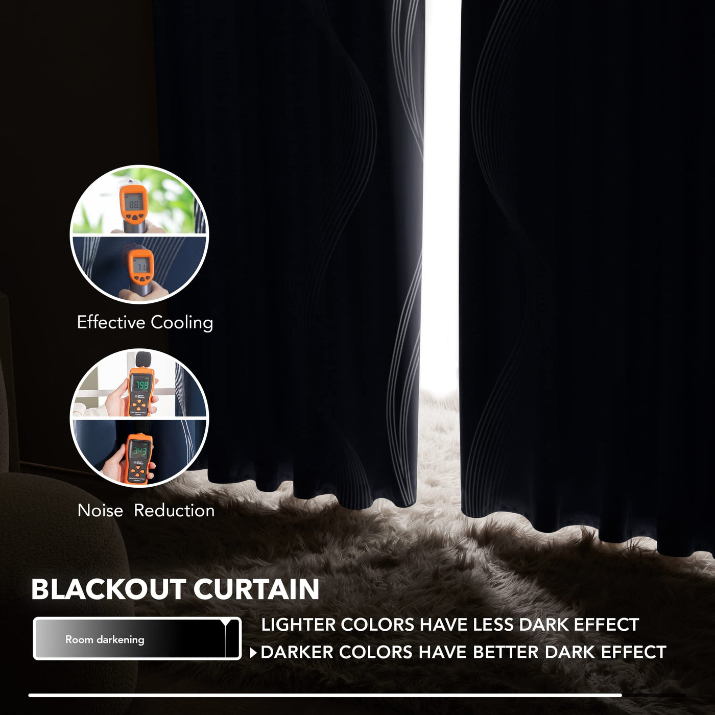 Q: How do these curtains help with energy savings?A: These curtains feature thermal insulation that helps regulate indoor temperatures, keeping your room cooler in the summer and warmer in the winter, which can potentially reduce your energy costs.