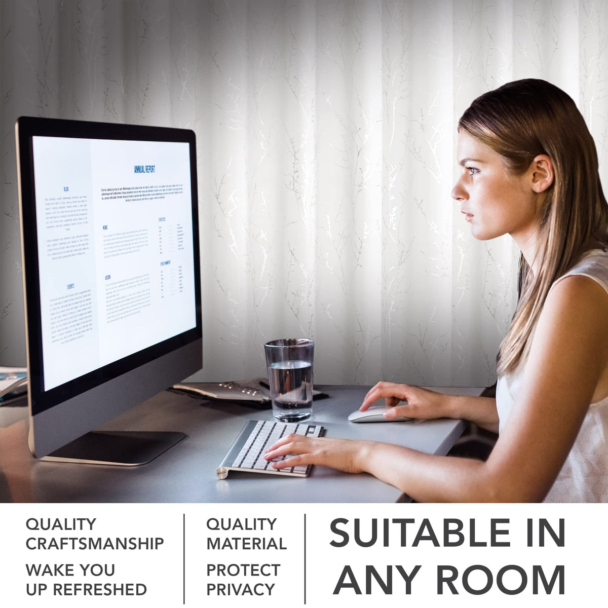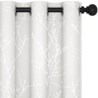 Deconovo blackout curtains designed with silver tree branches convey an image of nature and tranquility. The curtains are soft, thick, but high color fastness, which can create a luxury atmosphere for your home decor. Silky touch considerately upgrades your purchasing experience and sets the mood for the rest of the day. Blackout Performance Triple - weave fabric can effectively thicken the curtains and enables the room darker, which not just to calm the mind for bed but relieve life stress. Creative Design Featuring silver tree twigs creates a simple but elegant atmosphere. This printed pattern will perfectly blend in with your home decor, no matter you are in modern style and rustic style. Recommended Reasons Resistant to wear, not easy pilling fabrics and hard to shrink. Enhanced capacity for reducing road noise and enjoying a sound sleep. Sitting around the curtains and enjoying the sense of 'returning to the nature' in hustling metropolis. One curtain for multiple functions, you can use it for solar shading, privacy protection as well as decoration. Soft Material 100% polyester enables curtains durable, wrinkle - free and cozy to touch. The fabric itself has good shape stability, which means it's not easy to shrink and fade. Timely and Effective Service 'Customer first, quality first' is our persistent pursuit. Deconovo is committed to improving customers' purchasing experience and providing satisfied service.