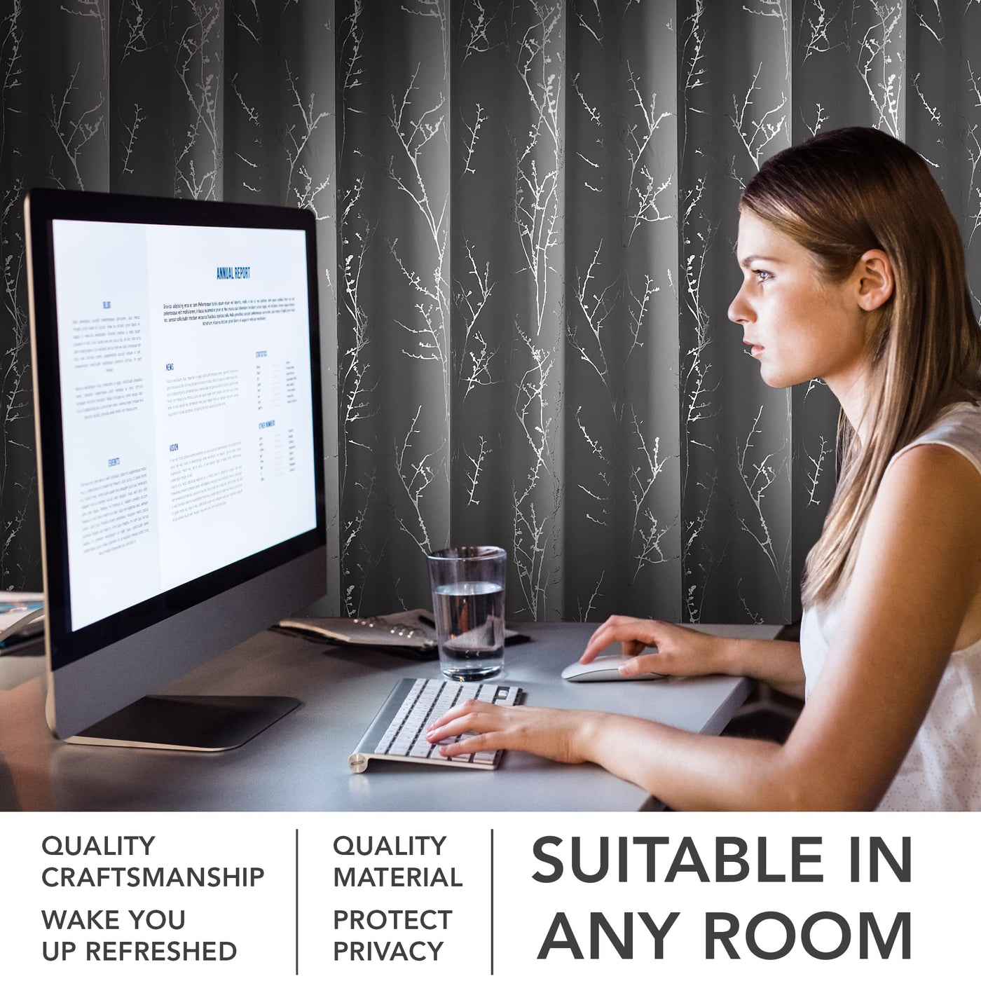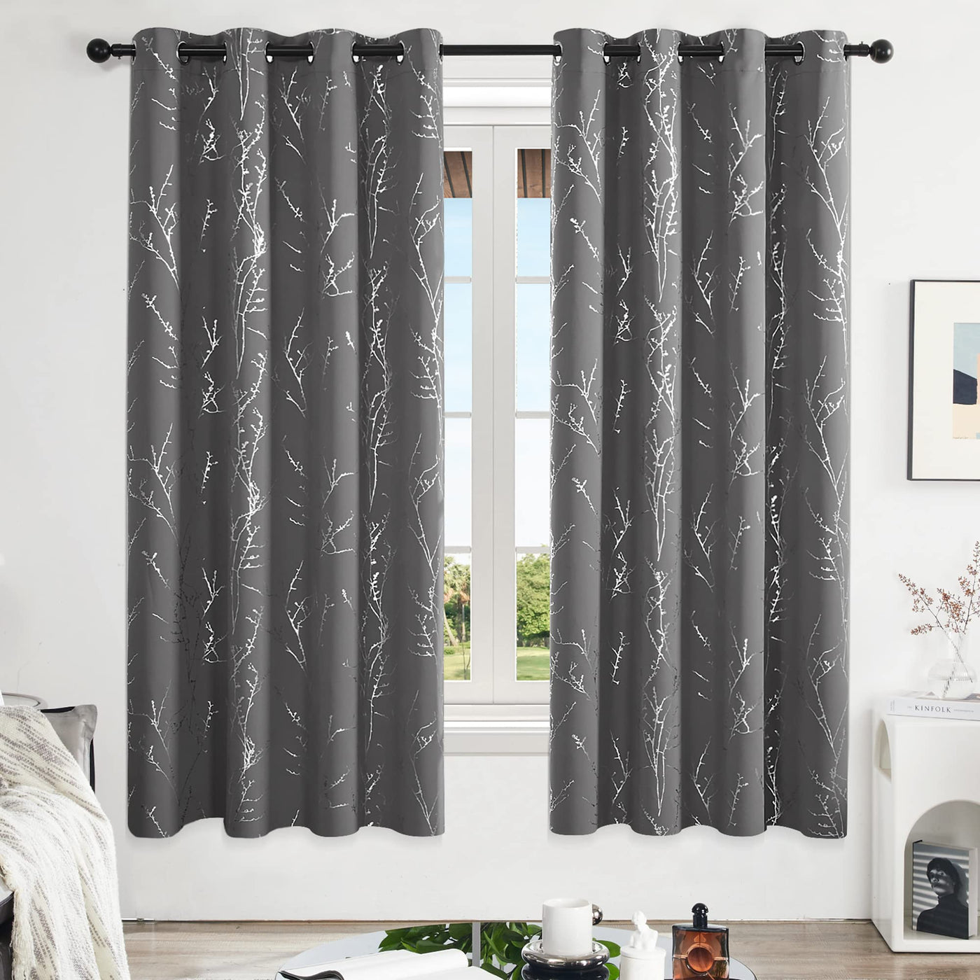 Deconovo blackout curtains designed with silver tree branches convey an image of nature and tranquility. The curtains are soft, thick, but high color fastness, which can create a luxury atmosphere for your home decor. Silky touch considerately upgrades your purchasing experience and sets the mood for the rest of the day. Blackout Performance Triple - weave fabric can effectively thicken the curtains and enables the room darker, which not just to calm the mind for bed but relieve life stress. Creative Design Featuring silver tree twigs creates a simple but elegant atmosphere. This printed pattern will perfectly blend in with your home decor, no matter you are in modern style and rustic style. Recommended Reasons Resistant to wear, not easy pilling fabrics and hard to shrink. Enhanced capacity for reducing road noise and enjoying a sound sleep. Sitting around the curtains and enjoying the sense of 'returning to the nature' in hustling metropolis. One curtain for multiple functions, you can use it for solar shading, privacy protection as well as decoration. Soft Material 100% polyester enables curtains durable, wrinkle - free and cozy to touch. The fabric itself has good shape stability, which means it's not easy to shrink and fade. Timely and Effective Service 'Customer first, quality first' is our persistent pursuit. Deconovo is committed to improving customers' purchasing experience and providing satisfied service.