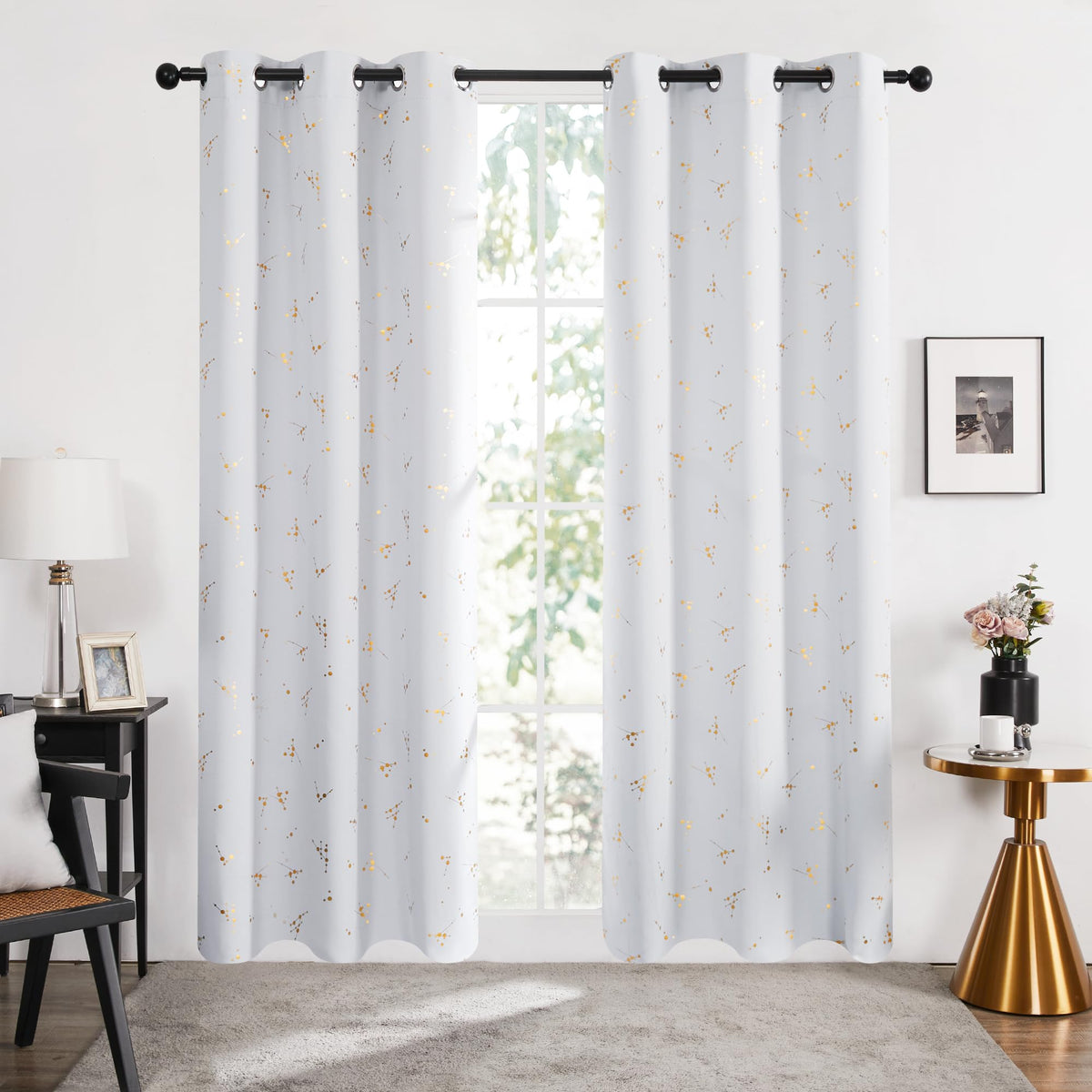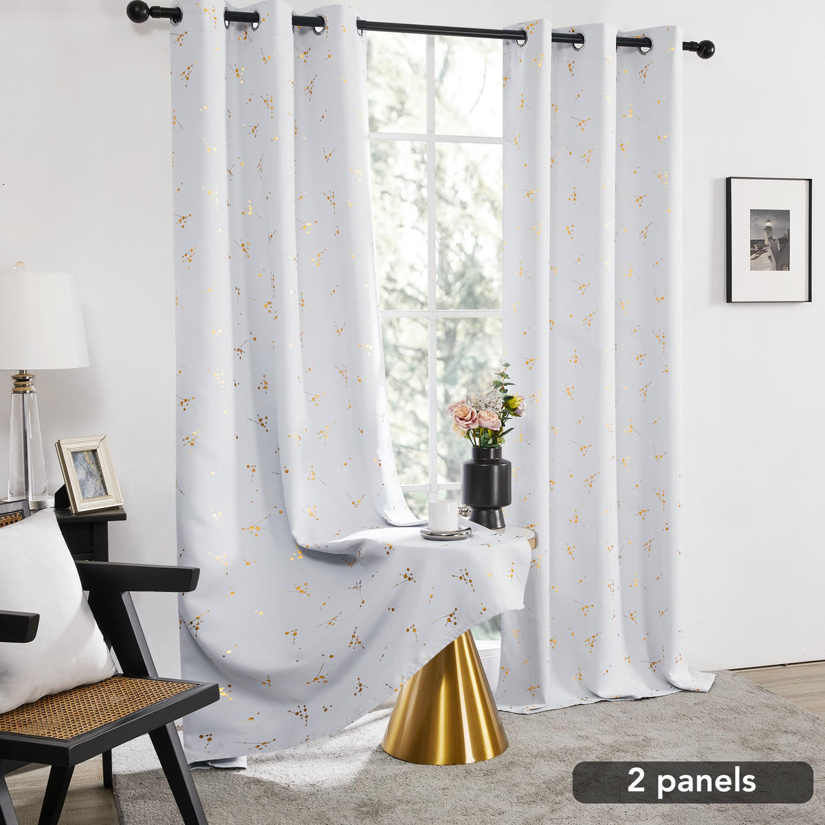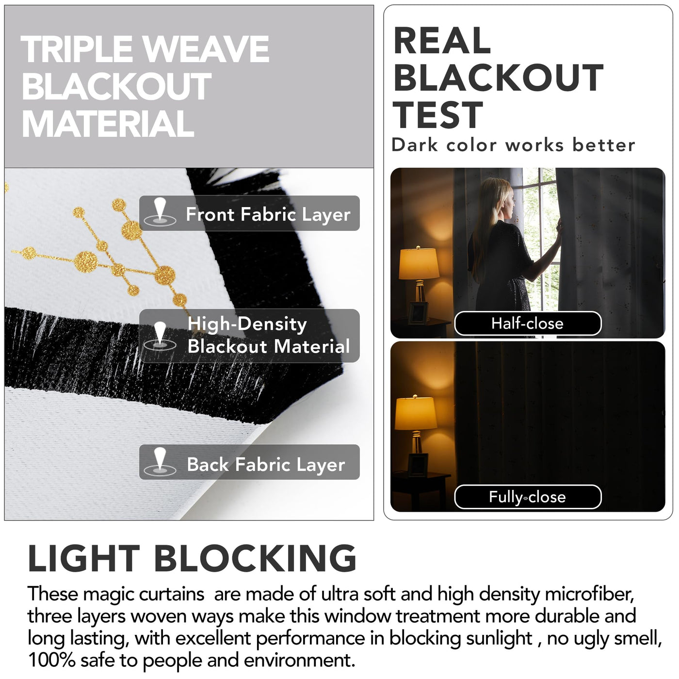 Deconovo blackout curtains are made of 100-percent polyester blackout fabric and considerably darken the room. The darker the color, the better the blackout capabilities.