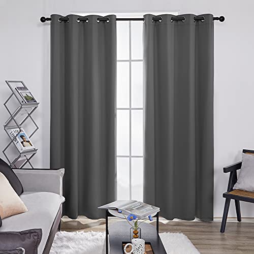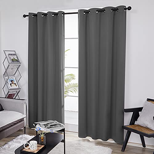 Deconovo Blackout Grommet Curtains ?Thermal Insulated, Noise-Reducing, Sustainable & Easy-Care Drapes For Bedroom, Living Room & Office ?Oeko-Tex Certified, Dark Grey, 55W X 78L Inch (Set Of 2)