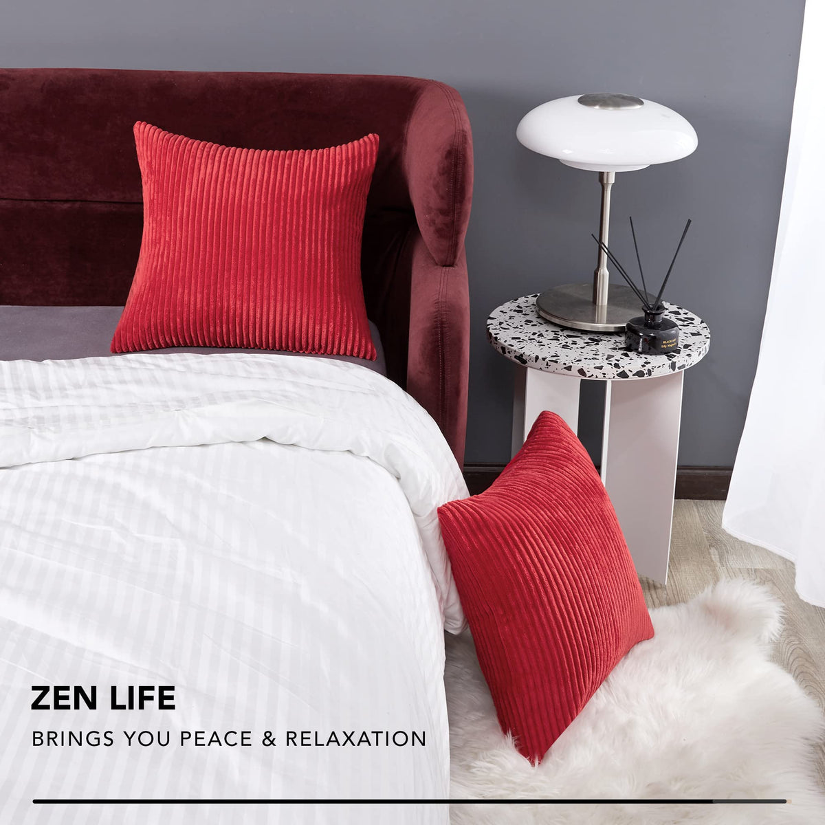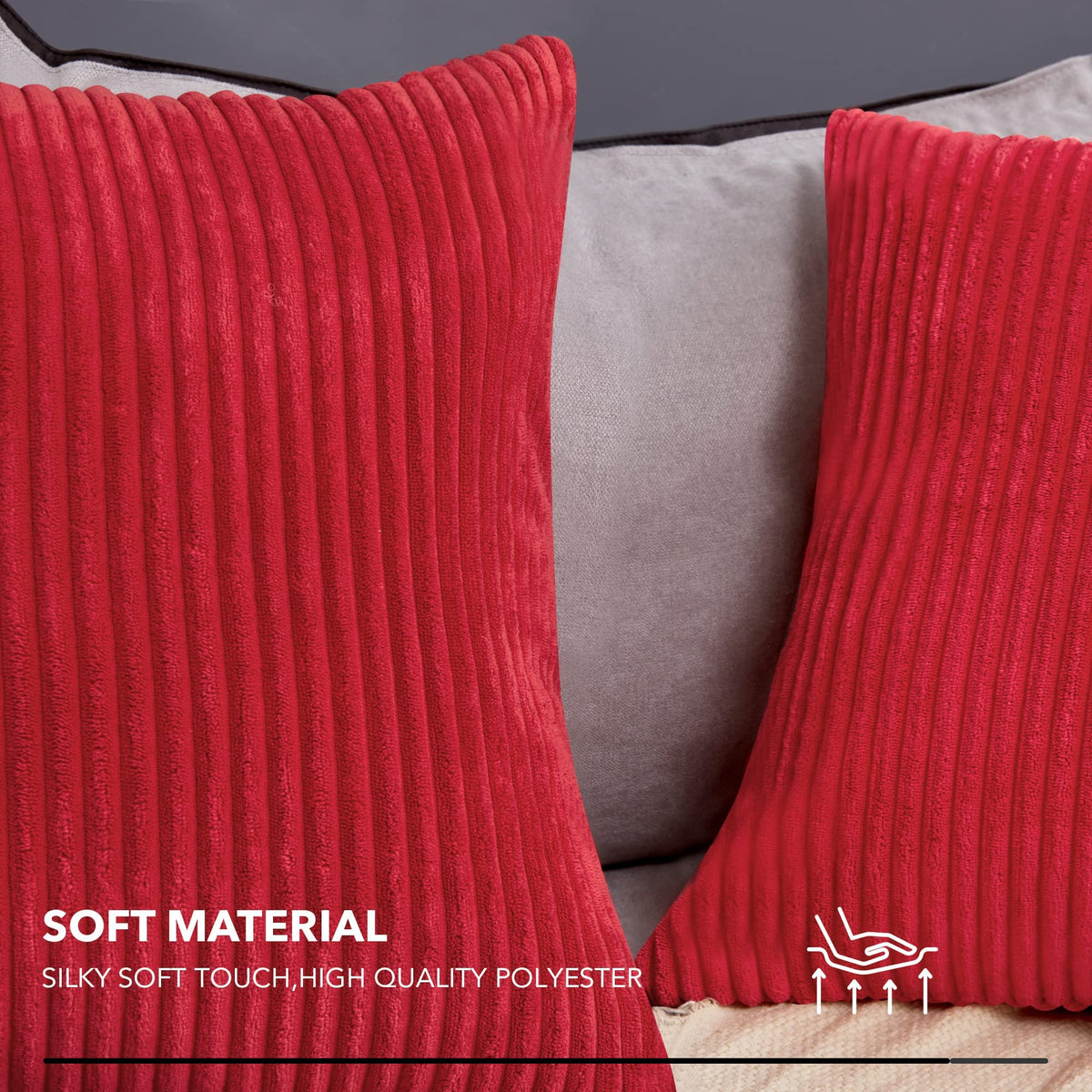 Deconovo Corduroy Throw Pillow Covers, Set Of 2 Soft Decorative Cushion Covers, Machine Washable Velvet Texture For Sofa, Couch, Bedroom & Living Room, 22X22 Inch, True Red