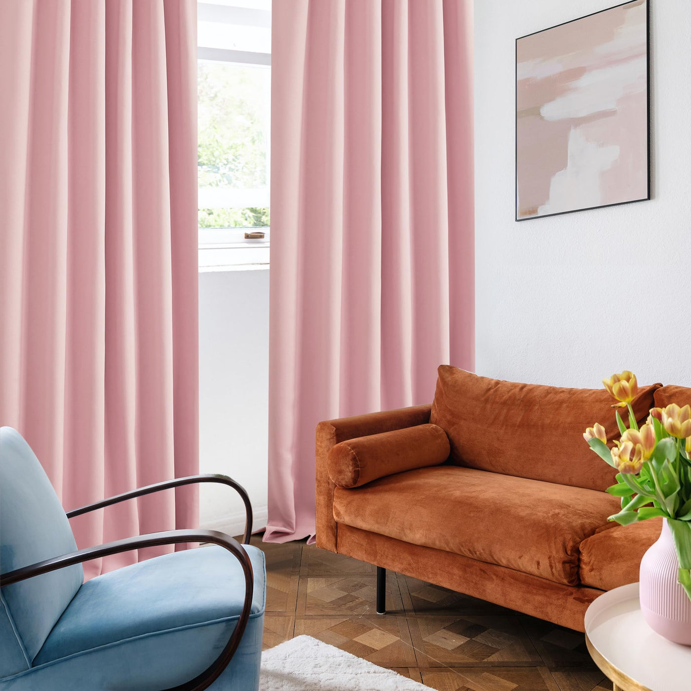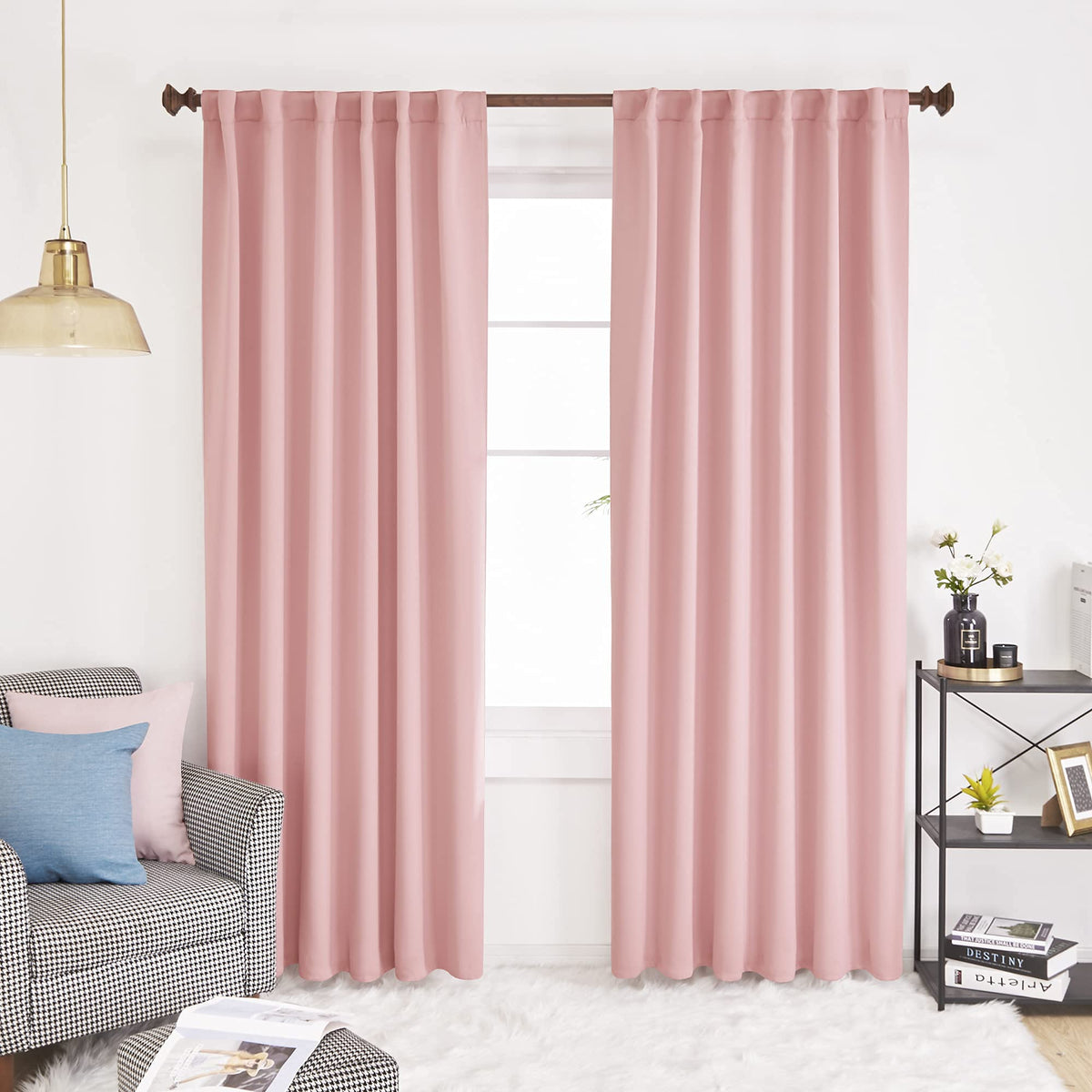 Deconovo solid back tab and rod pocket blackout curtains, brings a comfortable and lively atmosphere in your home. Solid bring fabric an incredible beauty. These room darkening curtains are stylish and have a unique design. Made of 100 percent of polyester, they are silky, soft, drapery and very pleasant to touch when compared to the other curtains. All seams are nice and straight, no loose threads. The Deconovo curtains also have no visual defects. Overall, it makes the curtain hang nicely and gives an expensive look. They are durable, the fabric is not at all flimsy, and they are made to last for a long time! They are super easy to hang.