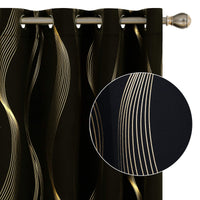 Deconovo Golden Foil Print Blackout Curtains, Room Darkening Wave Curtains & Drapes, Grommet Curtains For Living Room, Set Of 2,
