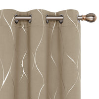 Deconovo Blackout Curtains Wave Foil Print Pattern Curtain Deconovo Wave Foil Print Pattern Blackout Curtain Brings A Comfortable Atmosphere In Your Home. Our Blockout Curtains Are Ideal For Those Who Wish To Have Undisturbed Moments Indoors, For A Good Sleep, Late Work And Other Purposes. These Curtain Panels Are Fully Crafted With 100 Percent High Quality Polyester. Deconovo Blackout Curtains Can Considerably Darken The Room At Any Needed Time Of The Day. Great For Those Willing To Spend Less On Air Condition And Heating Of The Room, As These Curtains Are Thermal Insulated To Help In Saving On Energy Cost. Able To Provide Superior Privacy, The Room Darkening Curtains Are Not Seethrough And Will Keep Any Indoor Activity Private.Available In Various And Beautiful Colors: Black, Light Grey, Khaki, Royal Blue, Light Pink, White, Light Beige, Navy Blue, Pink We Offer The Curtain Panels In Various Sizes: 52 X 63, 52 X 84, 52 X 96, 52 X 45, 52 X 54, 52 X 72, 52 X 108, 42 X 63, 42 X 84, 42 X 45, 42 X 54, 42 X 72. Care Instructions Hand Wash Under 86 F, Not Bleached, Iron At Low Temperature. Ps:Our Product Pictures Are Real And Shot By Professionals. However, Due To Differences In Computer Monitors Display, There Can Be Color Variations Between The Actual Product And Your Screen.
