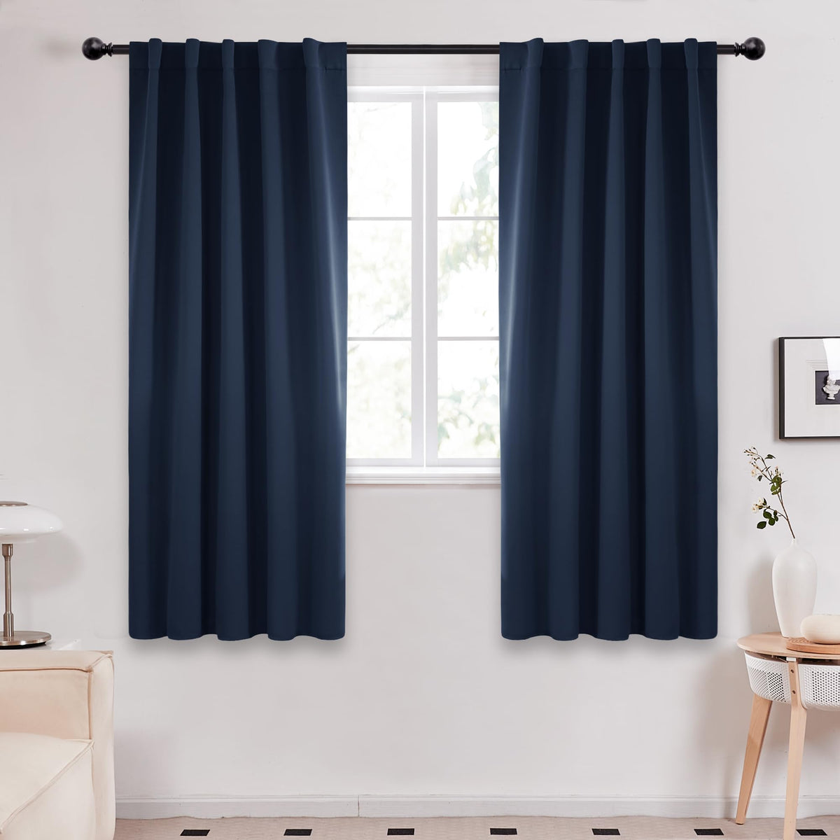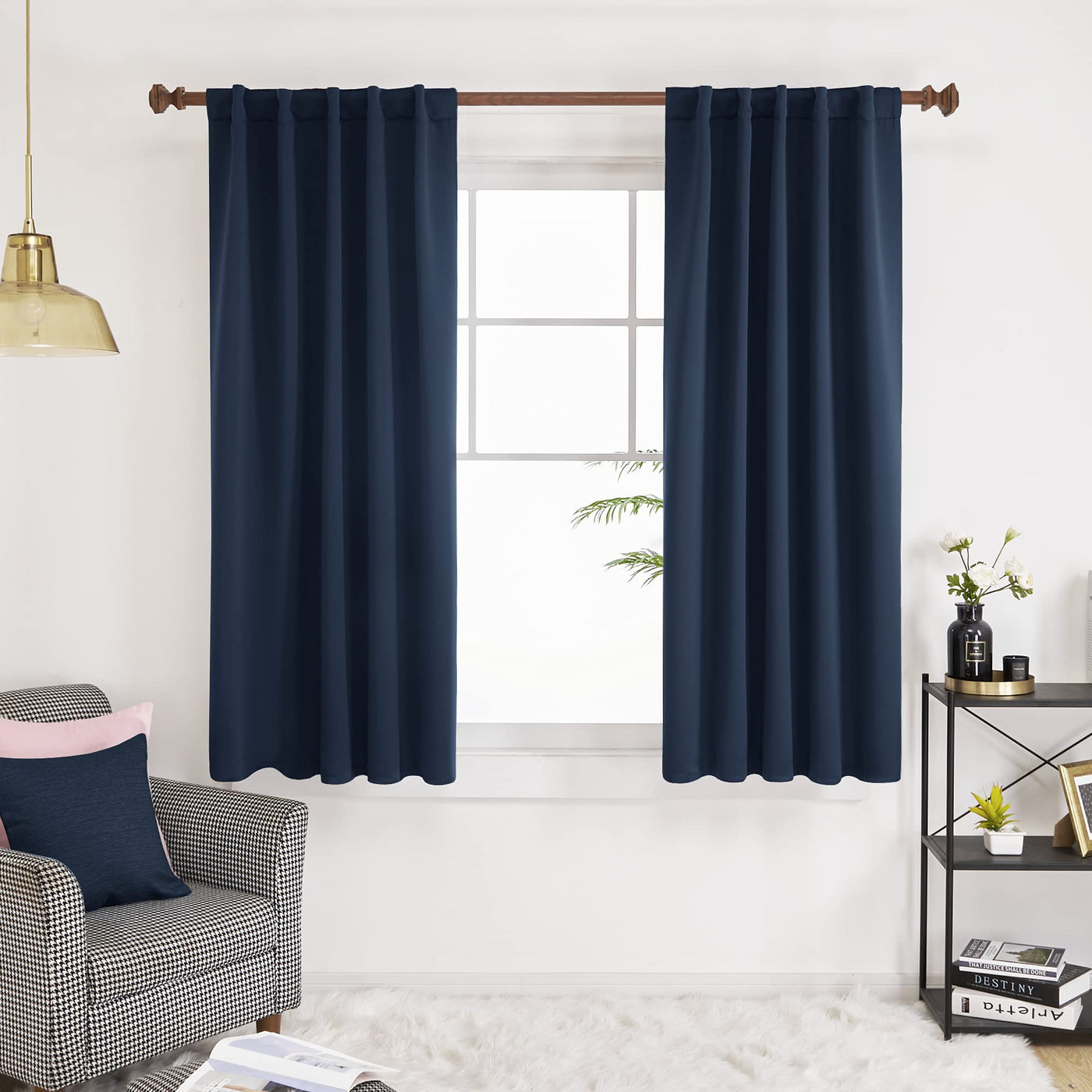 Deconovo Navy Blue Blackout Curtains For Bedroom - 42X63 Inch, 2 Panels, Solid Room Darkening Thermal Insulated Rod Pocket And Back Tab Curtains