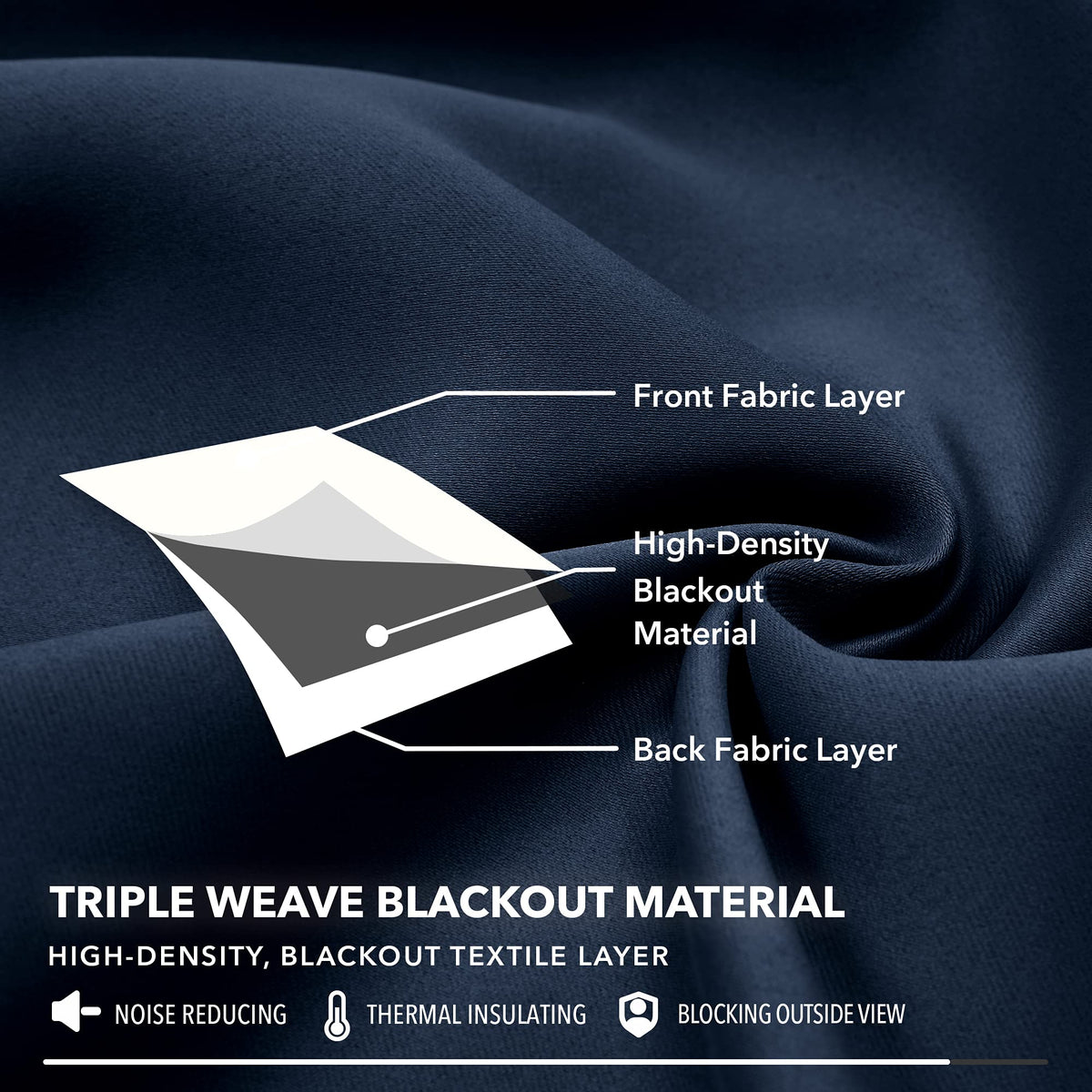 Deconovo Navy Blue Kitchen Curtains 45 Inch Length, Room Darkening Blackout Curtains, Soundproof Curtain Panels (Navy Blue, 52X45 Inch, 2 Panels)