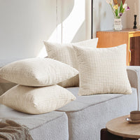 Deconovo Pillow Covers, Throw Pillow Covers 18X18, Throw Pillows, Set Of 4, Cream Corduroy Striped Decorative Sofa Couch Bed Bed