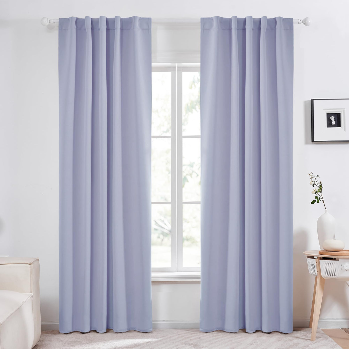 Deconovo Rod Pocket And Back Tab Blackout Curtains For Living Room Thermal Insulated Room Darkening Curtains 42Wx95L Inch Light Purple 2 Panels