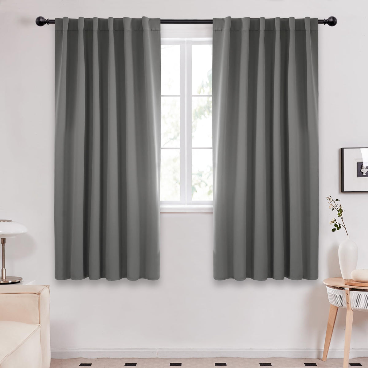 Deconovo Rod Pocket And Back Tab Curtains, Blackout Curtains Room Darkening, Blinds Thermal Insulated Curtains For Bedroom, 52X63 Inch, Light Grey, 2 Panels