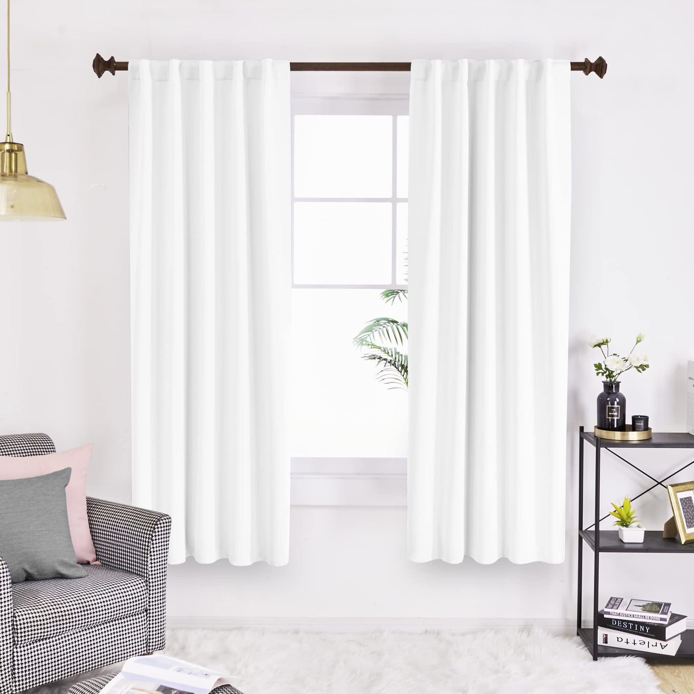 Deconovo Room Darkening Curtains, 50% Blackout Curtains For Bedroom - Back Tab And Rod Pocket Drapes, 42X72 Inch, White, Set Of 2 Panels