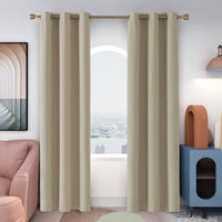 Deconovo Room Darkening Grommet Window Treatment Panels, Thermal Insulated Blackout Curtains For Living Room, Set Of 2, Beige, 42X95 In