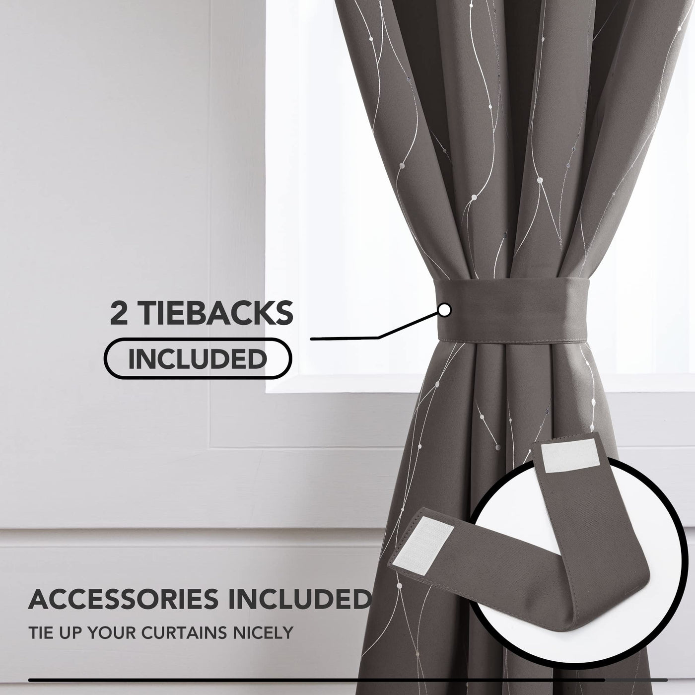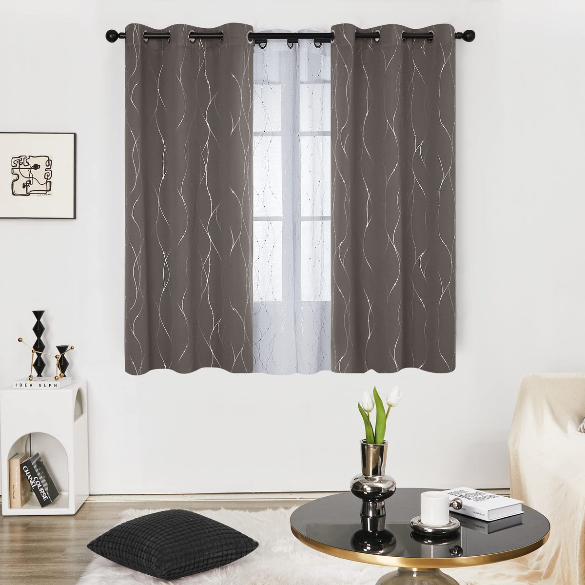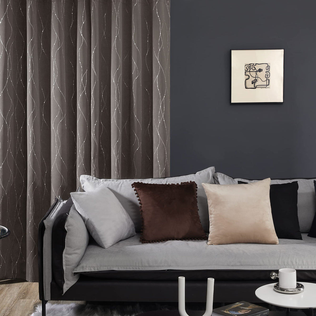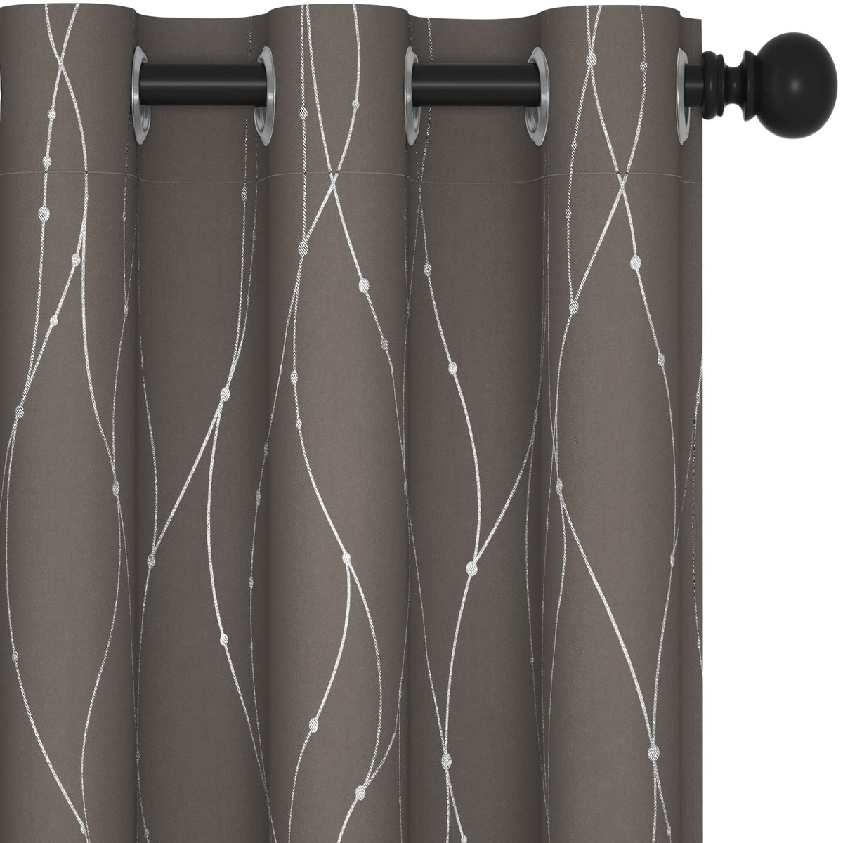 Deconovo Blackout Curtains Wave Line with Dots Foiled Printed Curtain