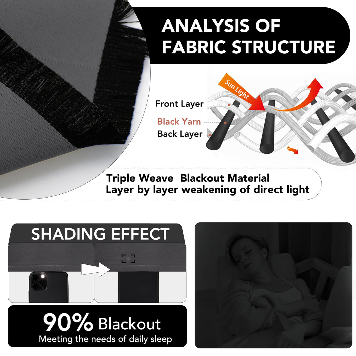 Beautifully accent the style of your room with Deconovo blackout curtains, while shielding your delicate furniture from light damages. Our draperies are fashioned from 100 percent premium quality polyester fabric using the triple weave innovative technology. These opaque curtains will make you enjoy a peaceful and dark room after a busy day or particularly hot one, as they can create a perfect meditative atmosphere in big or small rooms.