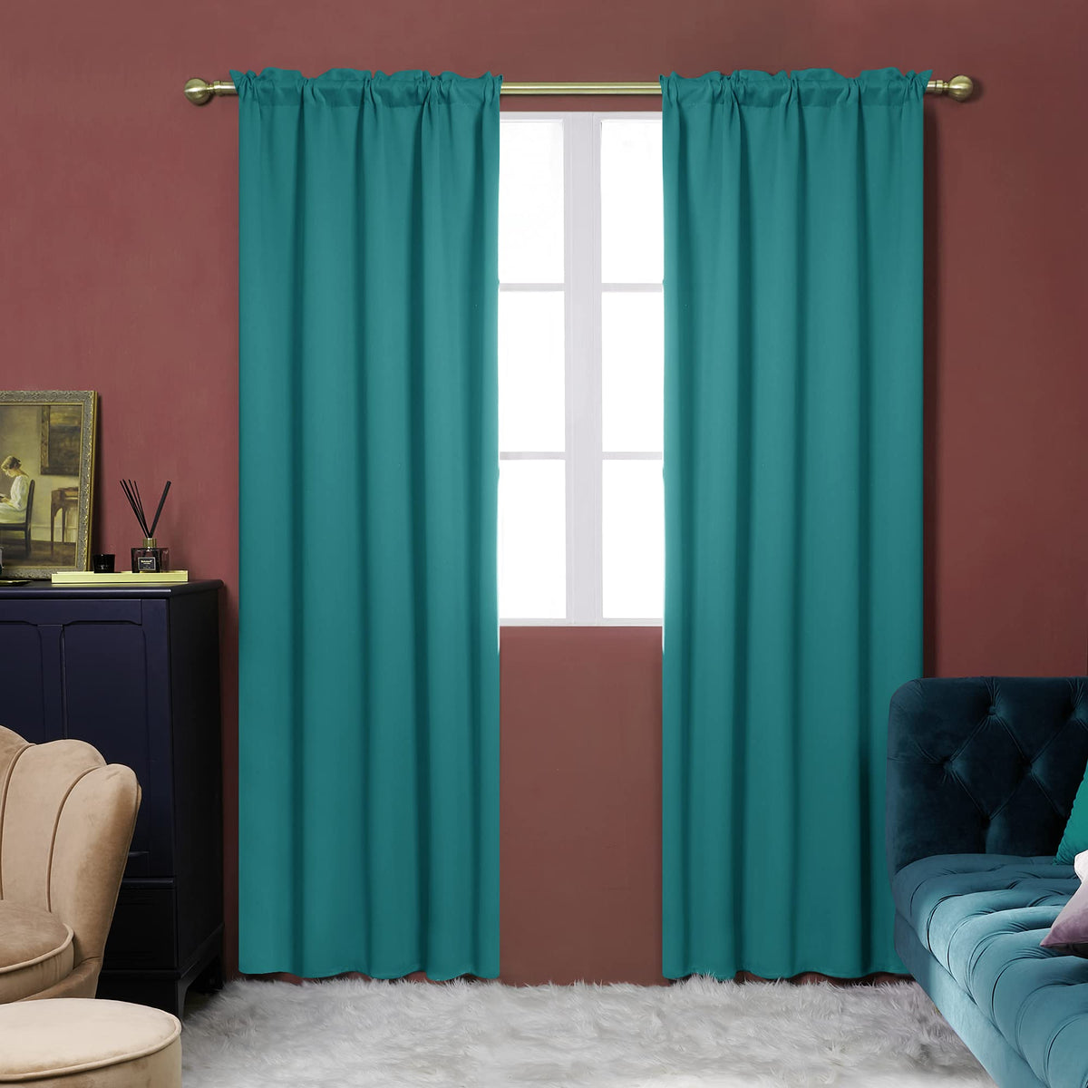 Deconovo Soild Rod Pocket Blackout Curtains, Turquoise, 38W X 84L