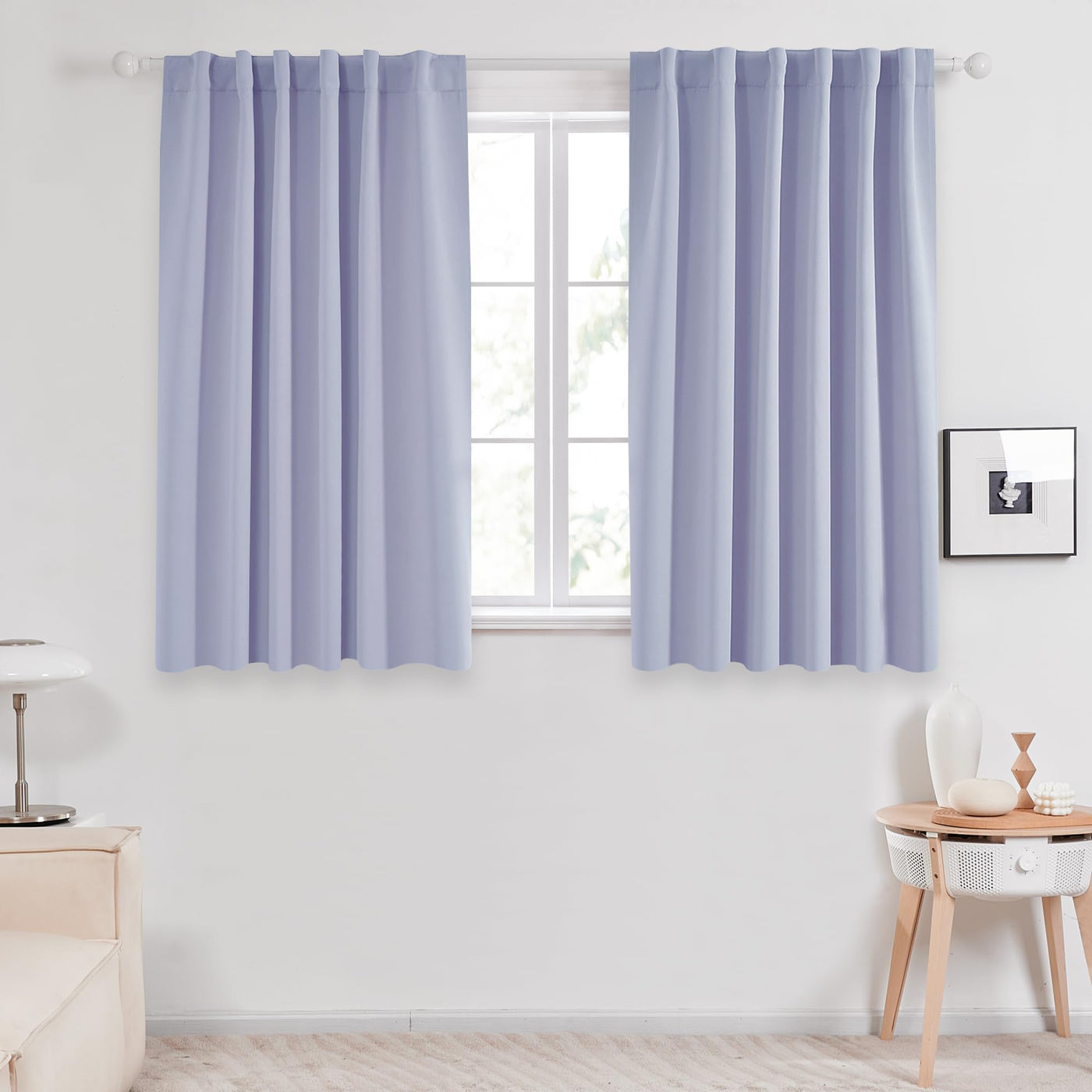 Deconovo Solid Back Tab And Rod Pocket Curtains Thermal Insulated Blackout Window Curtains For Kitchen 52Wx54L Inch Light Purple