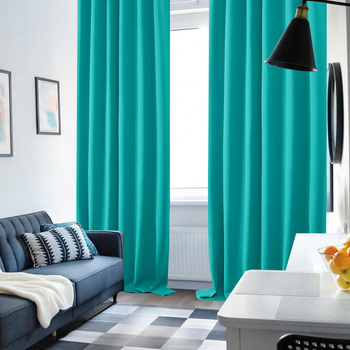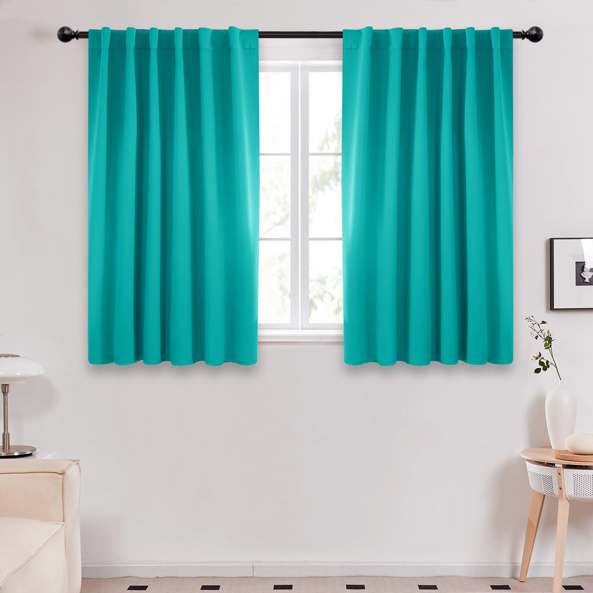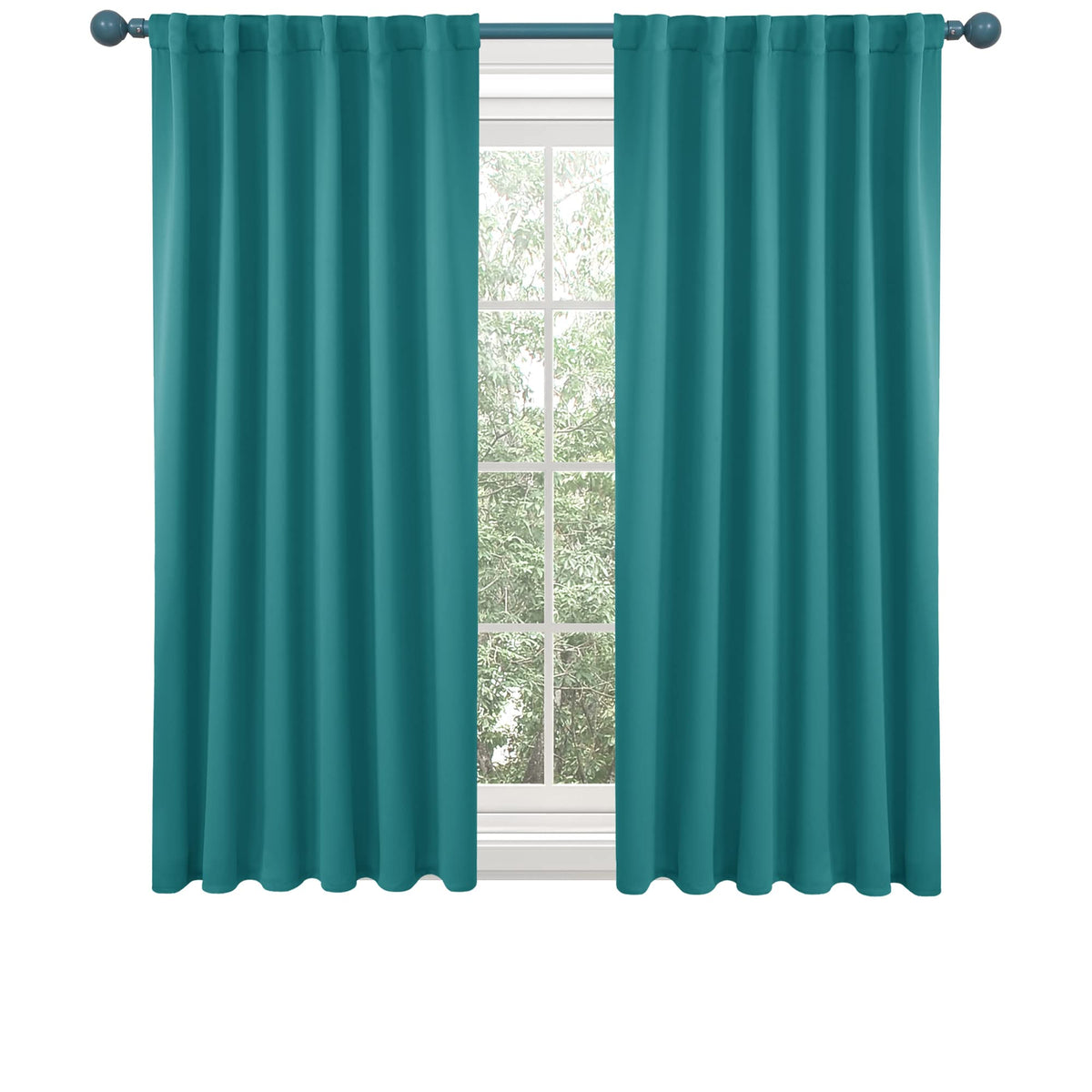 Deconovo Solid Back Tab And Rod Pocket Curtains, Thermal Insulated Blackout Window Curtains For Kitchen, 52X54 Inch, Turquoise, 2 Panels