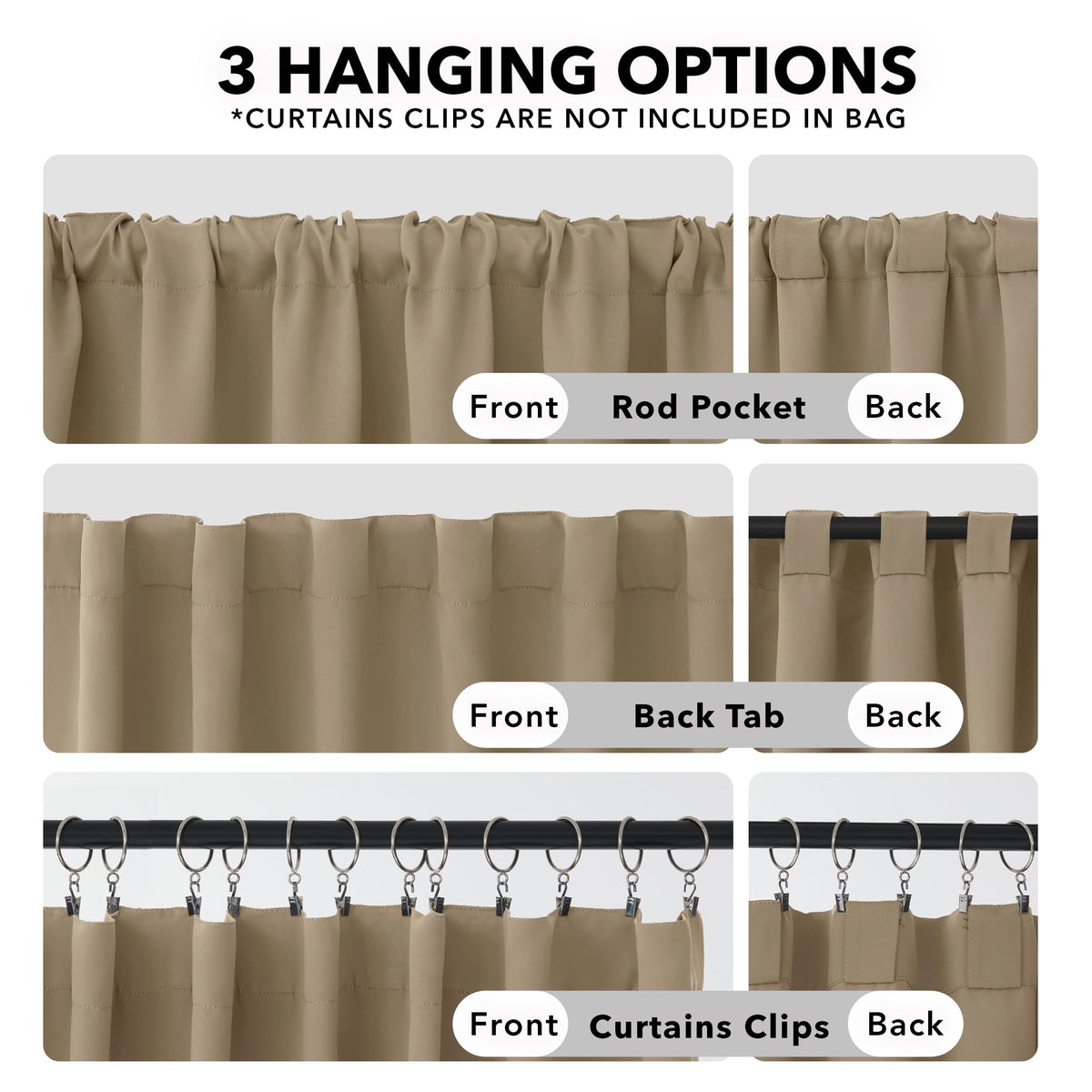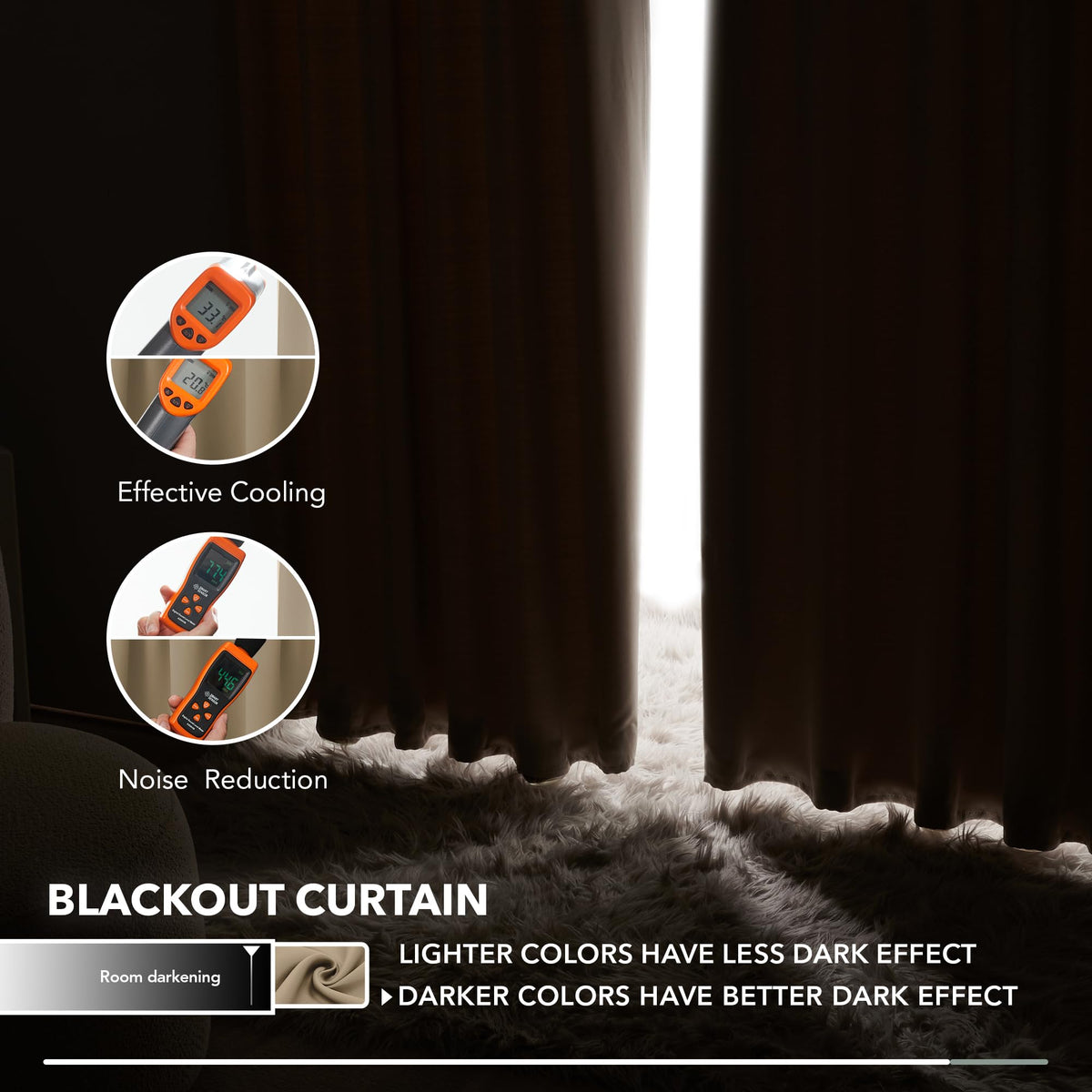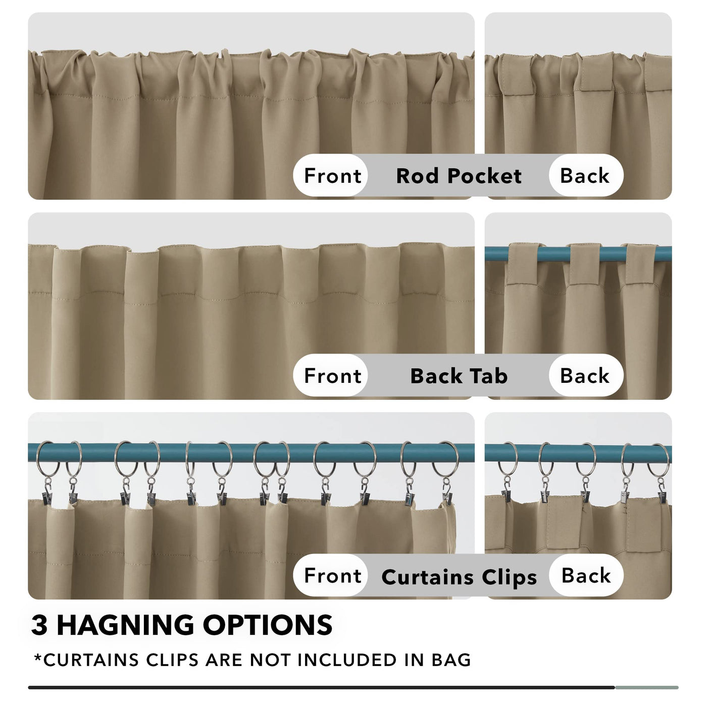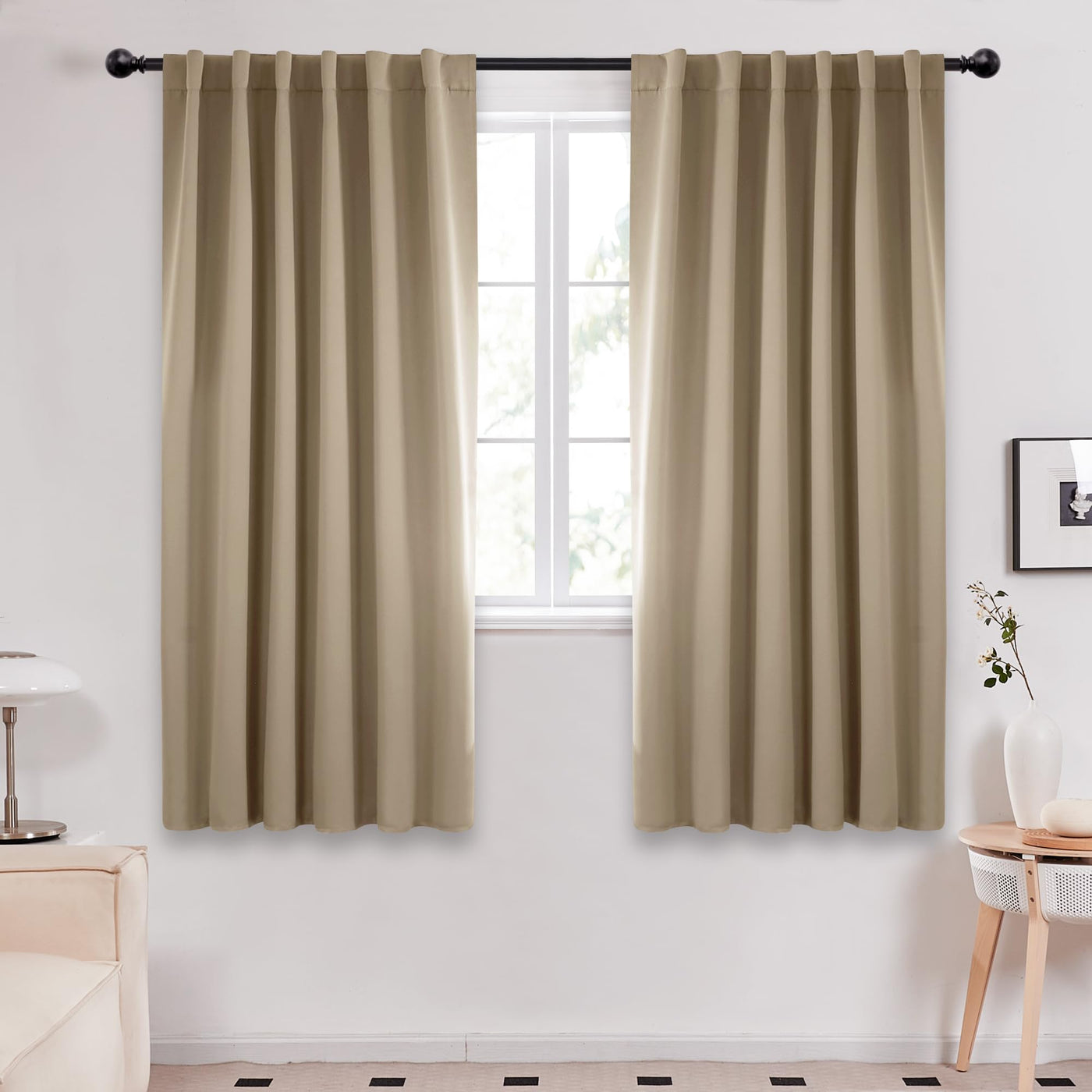 Deconovo Solid Room Darkening Panels, Back Tab And Rod Pocket Curtains Blackout, Thermal Insulated Curtains For Living Room, 52X63 Inch, Khaki, 2 Panels