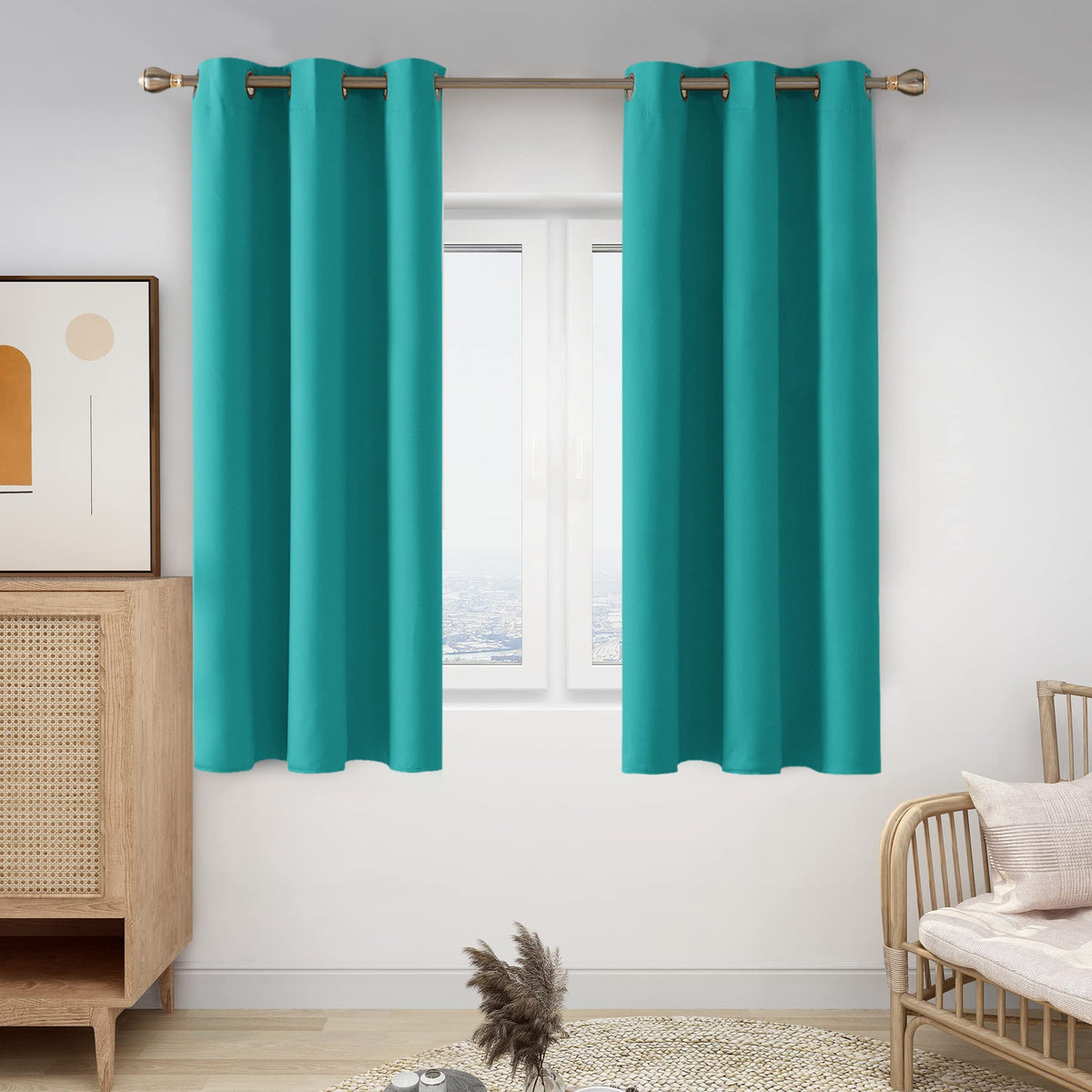 Deconovo Thermal Insulated Blackout Curtains Room Darkening & Energy Saving Solid Grommet Top Curtain Panels For Home Decor Bedroom Windows 2 Panels, Turquoise, 42Wx45L In