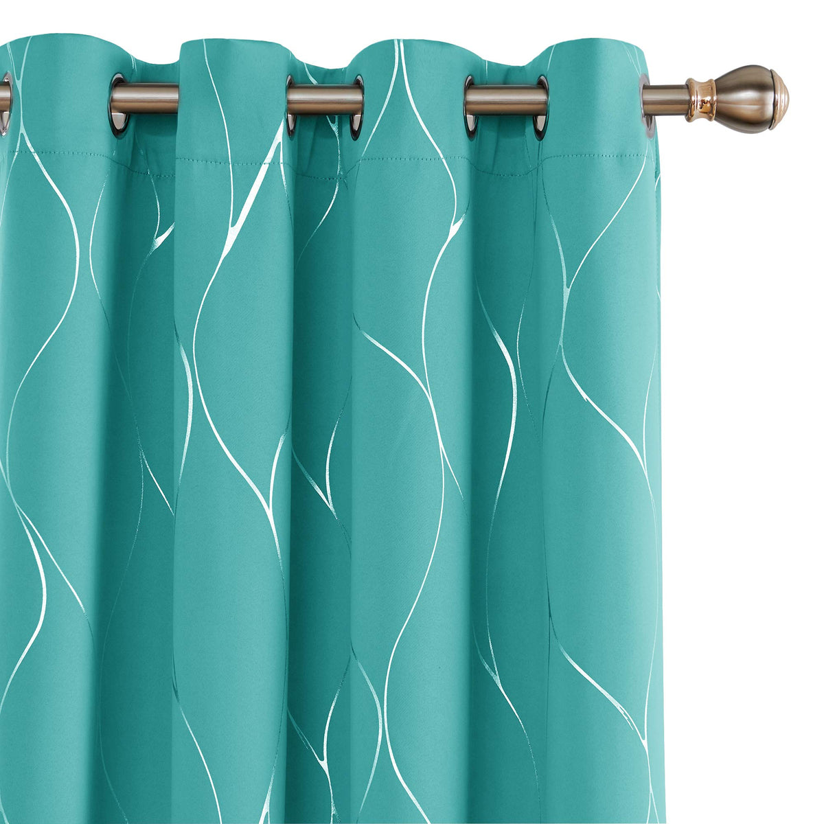 Deconovo Wave Printed Thermal Insulated Blackout Curtains, Room Darkening Energy Efficient Panel, Grommet Light Blocking Drapes For Boys' Room (52W X 96L Inch, 2 Panels, Turquoise)