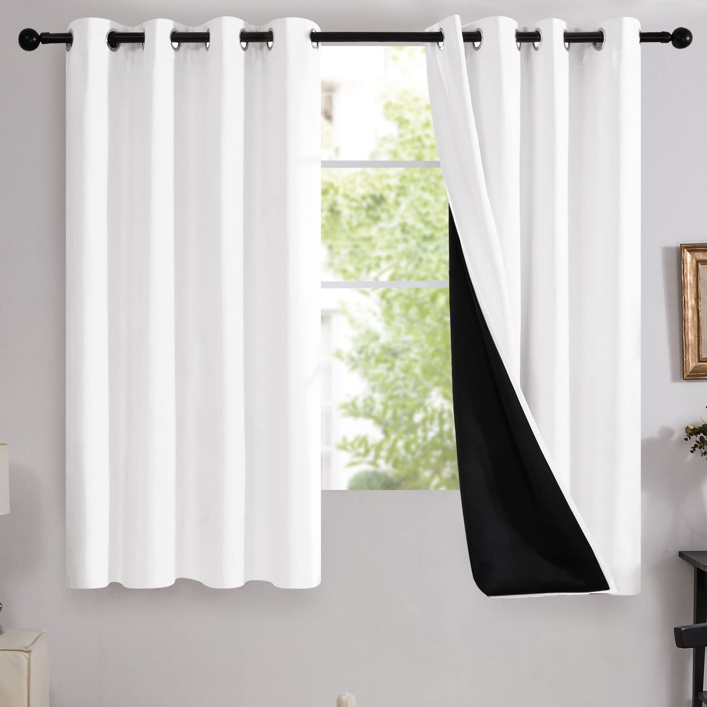 Deconovo White Blackout Curtains For Bedroom, 2 Thick Layers 100% Blackout Window Treatment Panels, Thermal Insulated Curtains F