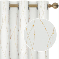 Deconovo Gold Wave Line With Dots Foil Printed Blackout Curtains Are Not Just Any Curtains - They Are An Investment In The Comfort And Style Of Your Home. The Unique And Lively Design Of These Classic Curtains Is Sure To Catch The Eye Of Anyone Who Enters The Room. Made From High-Quality 100% Polyester, They Offer Softness And Drapery That Will Make You Feel Like You'Re Living In A Luxurious Setting. The Nice Straight Seams And High-Quality Printing Ensure That The Living Room Curtains Are Durable And Long-Lasting, Providing Value And Peace Of Mind. But What Really Sets These Blackout Window Curtains Apart Is Their Ability To Address The Pain Points Of Many Customers. Do You Struggle To Fall Asleep Because Of Light Pollution? Tired Of Being Woken Up By The Sun Or Street Lights? Deconovo Gold Foil Pattern Curtains Are Here To Help. These Drapes Are Made With A Special Fabric That Blocks Out Up To 98% Of Light, Providing You With A Dark And Comfortable Sleeping Environment. Additionally, The Window Curtain Panels' Noise-Reducing Properties Can Help You Achieve A More Restful Night'S Sleep. No More Waking Up From A Leaf Falling Outside Or A Car Passing By. These Soundproof Curtains Have Got You Covered! Our Room Darkening Curtains Are Suitable For Gym Room, Hallway, Home Office, Hallway, Laundry Room, Hall Room, Hotel, Bedroom, Living Room, Loft, Apartment, Dining Room, Sliding Door, Garden, Classroom, Nursery Room, Kids Room, Guestroom, Villa, Infant Room, Parlor, Cupboard, French Door, Theater, Closet, Playroom, Room Divider. Deconovo Noise Reducing Curtains Are Suitable For Various Styles Of Decoration:American, Art Deco, Baroque, Casual, Chinese, Classic, Coastal, Colonial, Contemporary, Cottage, Country, Country Rustic, Eclectic, English, Farmhouse, French, Glam, Victorian, Traditional, Modern, Mission, Mid-Century Modern. Finally, The Farmhouse Curtains Are Available In A Range Of Sizes To Fit Any Window, Ensuring That You Get The Perfect Fit For Your Home.