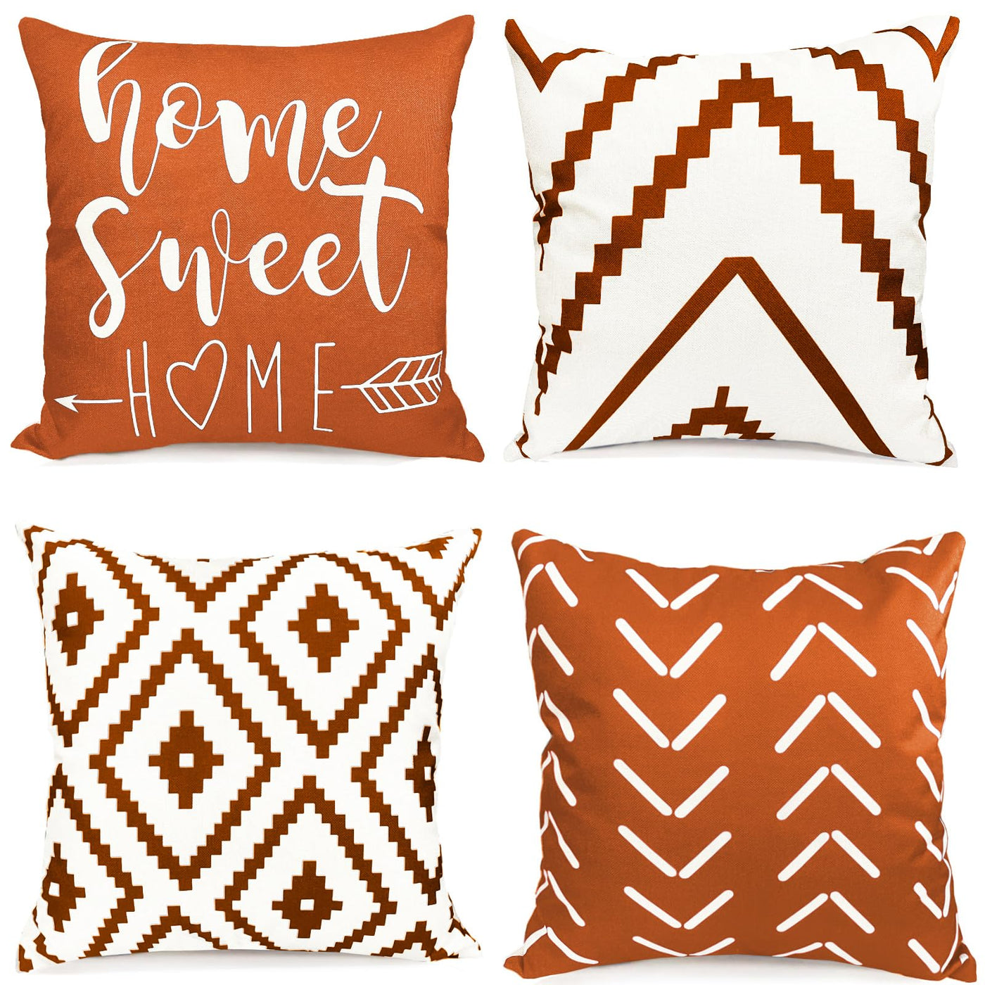 Decorative Throw Pillow Covers 18X18 Inch Orange Pillow Covers For Couch Sofa Living Room Bedroom Car,Farmhouse Outdoor Throw Pi