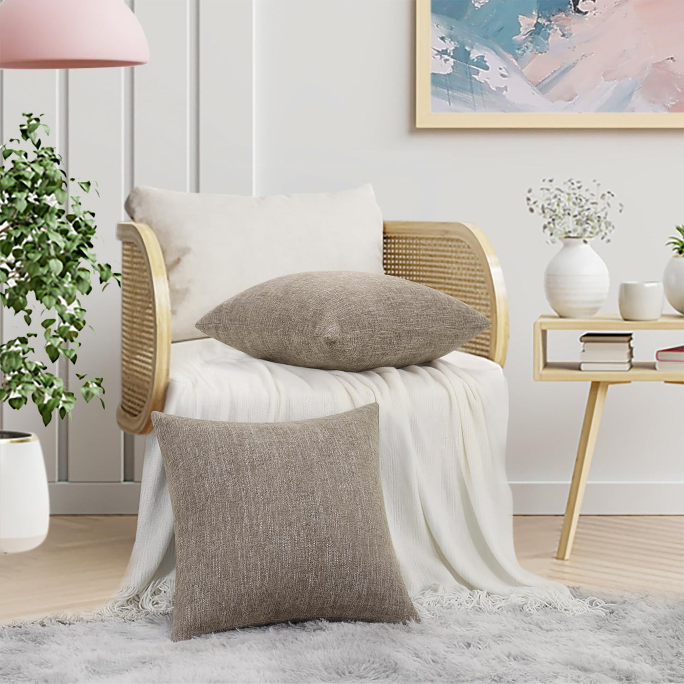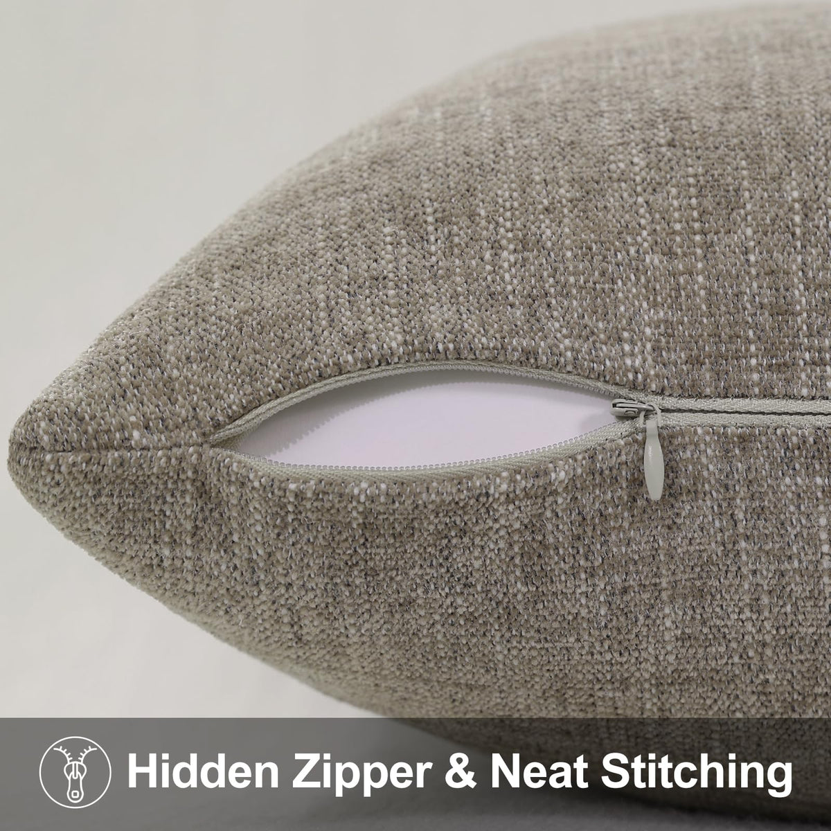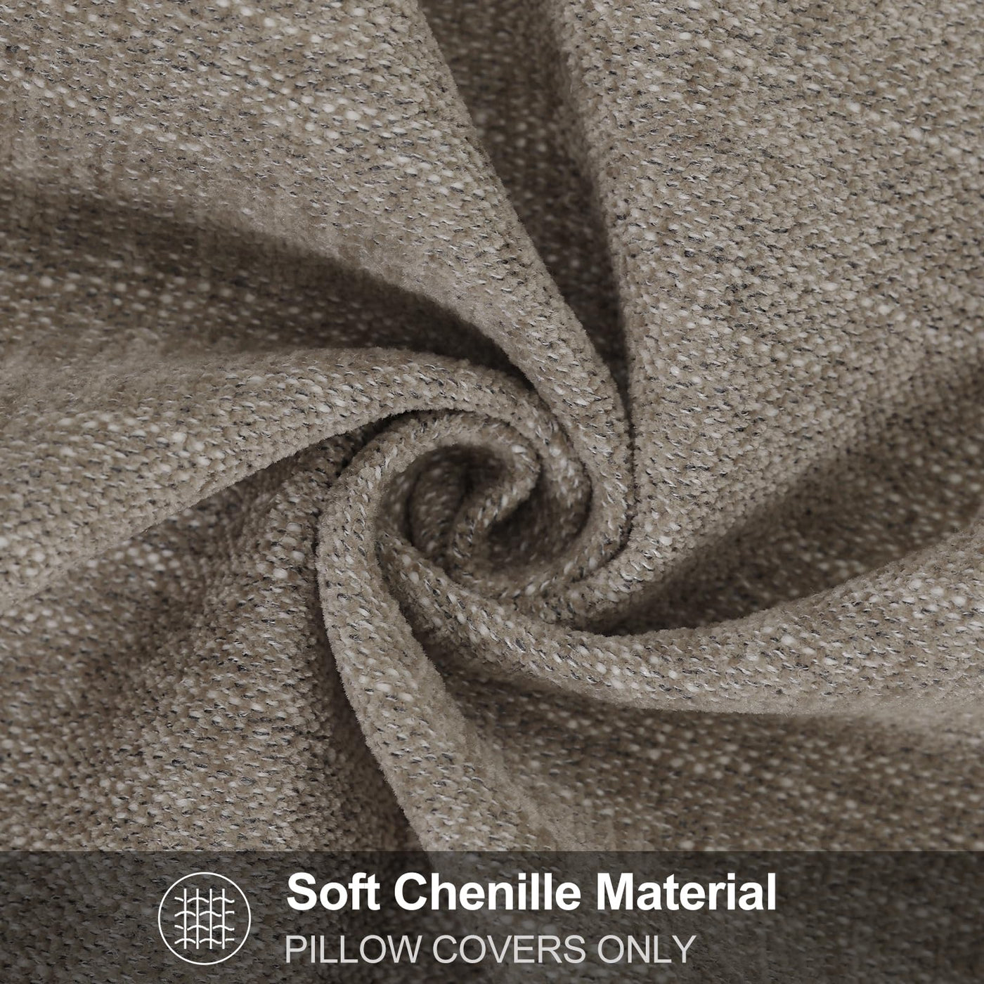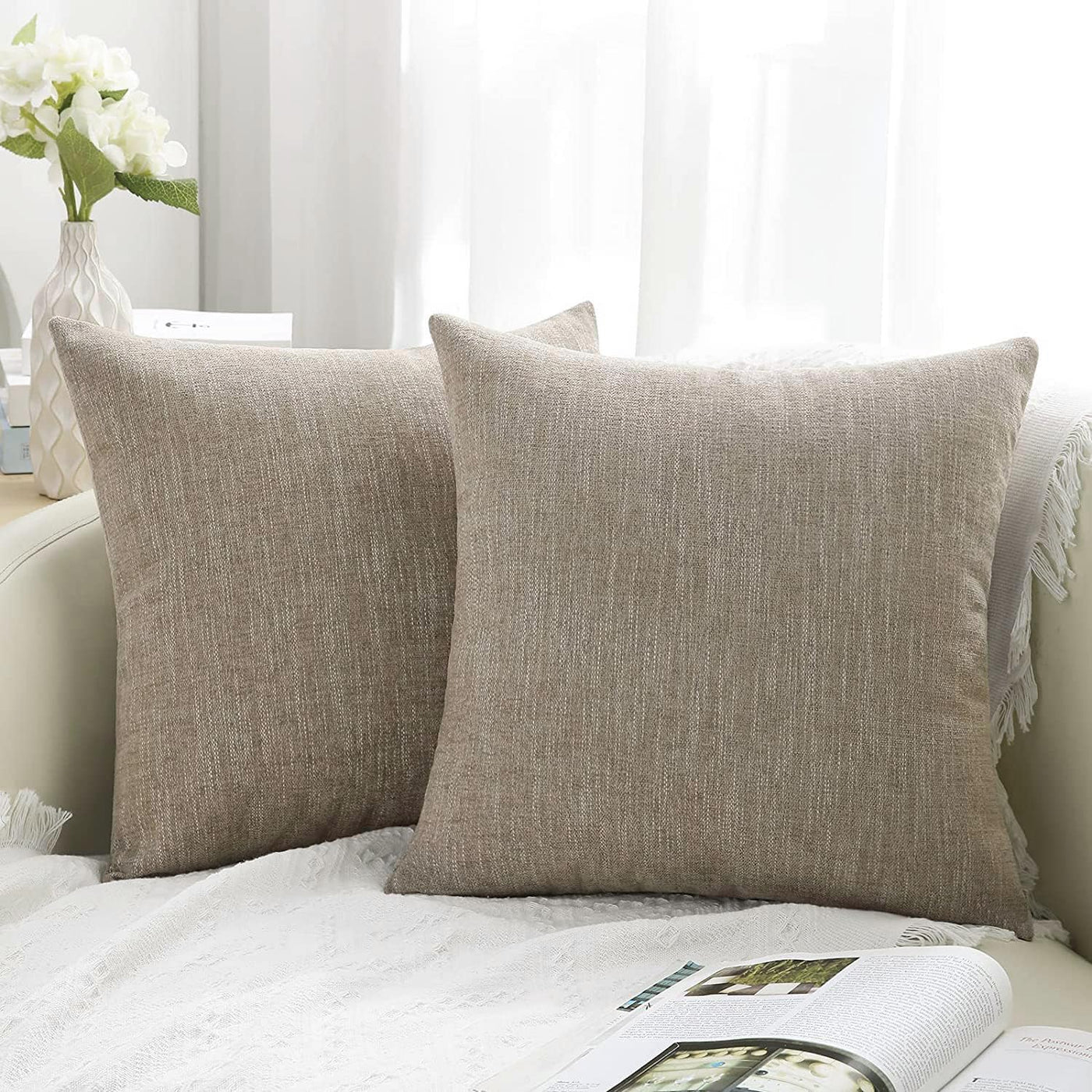 Decoruhome Decorative Throw Pillow Covers 20X20 Set Of 2, Farmhouse Chenille Pillow Covers, Square Soft Pillow Covers For Couch Sofa Bed, Khaki