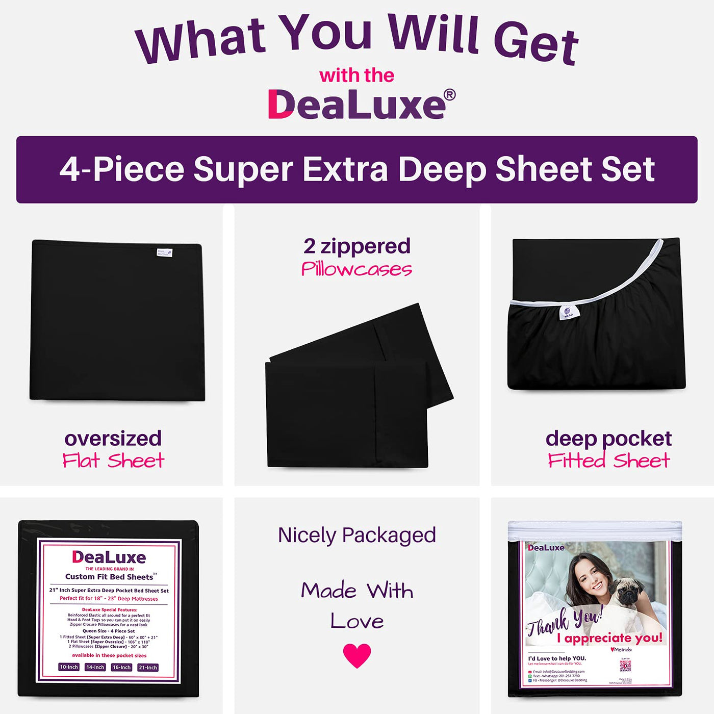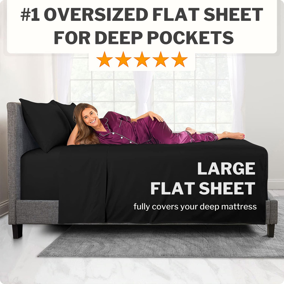 Deep Pocket King Size Sheets - 21 Extra Deep Pocket King Size Sheets - [4 Piece Set] King Bed Sheets Oversize Flat Sheet, Fit