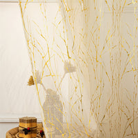 Branch Gold Sheer Curtains-Cream 84 Inches Long Pair
