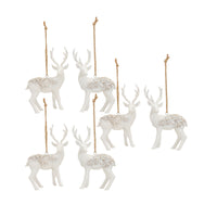 Deer Ornament (2 Asst) 3.25''H Resin Adorn your Christmas Tree with this beautiful set of Deer Figurine Ornaments. The modern all-white design paired with intricate pine accent makes this set the perfect addition to your holiday tree decor. The quality polyresin composition is sure to last for seasons to come. The pieces can be used as gifts for friends to cherish, or you can display the set on your own Christmas tree and enjoy them for years to come. Measures 4 x 1 x 3.25 each Primary Materials: Polyresin Reccommended for indoor use only Comes with a string for easy hanging