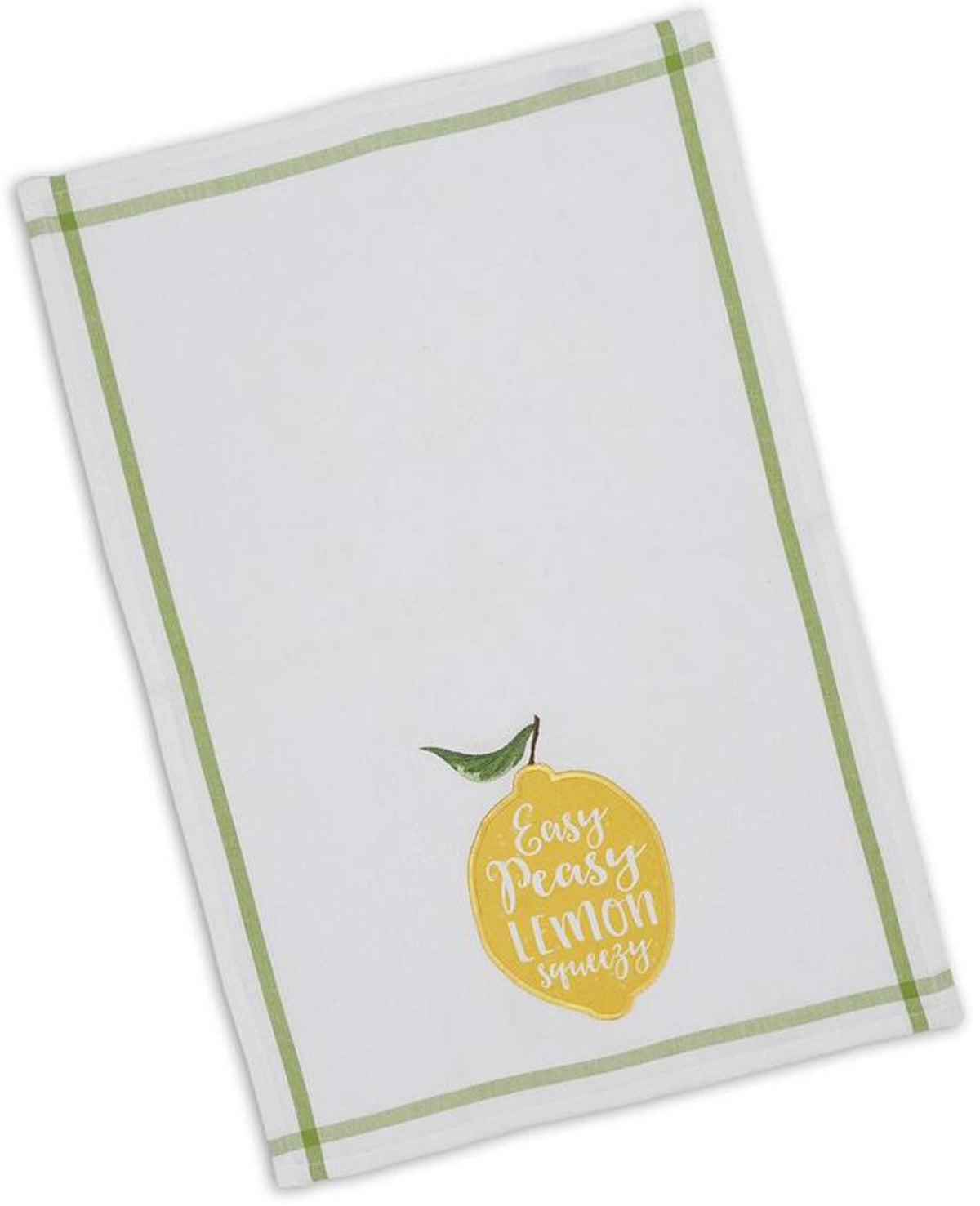 Bring Some Sun And Zest To Your Home Or Weekend House With This, Set Of 2, Lemon Squeezy Embellished Dishtowels From Design Imports Lemon Bliss Table Linens Collection. The Dishtowels Feature A Yellow Lemon With The Words Easy Peasy Lemon Squeezy On A White Background. They Measure18 X 28 And Are Made Of 100% Cotton. The Dishtowels Make A Lovely Hostess, Housewarming Or Holiday Gift Or Perfect For Everyday Use. Add Style And Functionality To Your Kitchen. Every Dishtowel Comes With A Hanging Loop, Which Is Ideal For Drying. Perfect For Tackling All Of Your Drying And Cleaning Needs In And Around Your Home. For Best Results, Machine Wash Cold Separately In The Gentle Cycle. Tumble Dry Low And Low Iron.