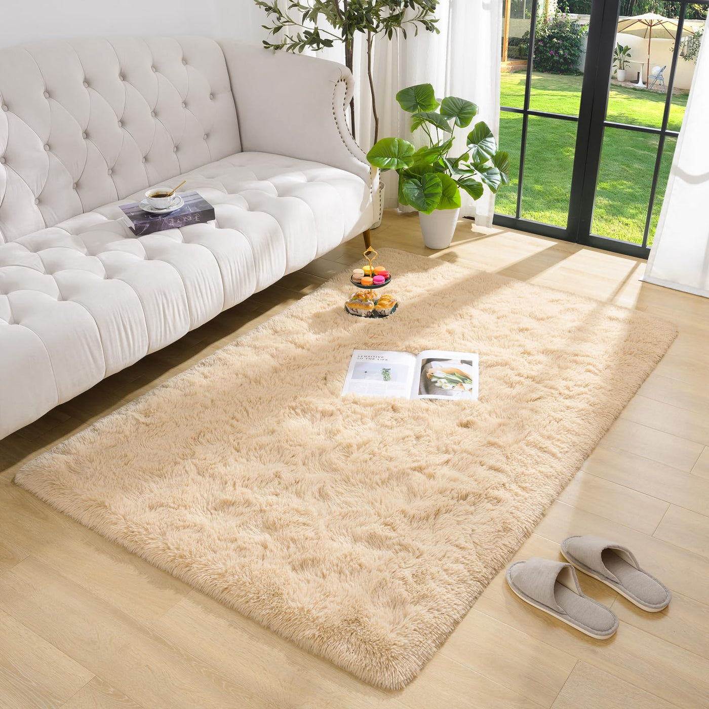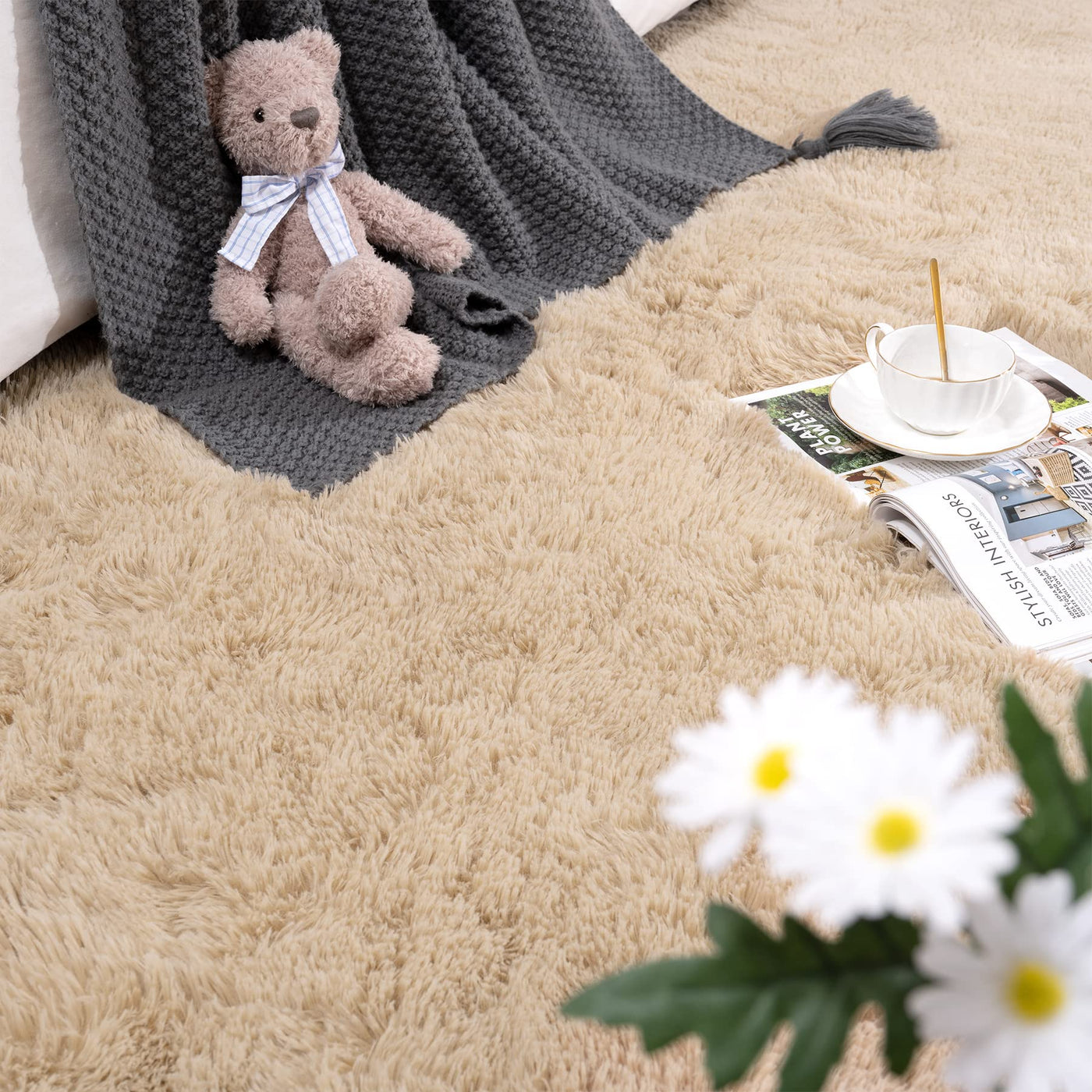 Detum Beige Bedroom Rug 4X6 Rugs For Bedroom Dining Room Fluffy Living Room Rug Washable Shag Rug Nonslip Area Rug Modern Home D
