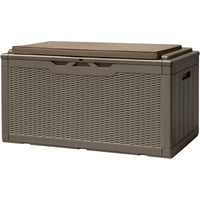 Are You In Need Of A Suitable Outdoor Storage Box For Your Home? Look No Further, Devoko 100 Gallon Deck Box Is Your Best Choice.Devoko Deck Box Is Made Of Waterproof Resin, With A Complementing Rattan Pattern Design, Effectively Preventing Fading And Rusting, While Also Maintaining A Fresh Appearance Even With All-Weather Use. Deck Storage Box'S Exceptionally Spacious 100-Gallon Storage Space Can Hold Anything You Need, Making It The Perfect Choice For Furniture Cushions, Gardening Tools.Not Only Serves As A Deck Box And Storage Bench But Also Serves As An Excellent Decoration For Your Home, Adding Color And Vitality To Your Patio, Garden, Yard, Porch, Or Even Indoors.Features:Includes A Comfortable Cushion For Use As A Two-Person Benchhandles On Both Sides For Easy Mobilitycome With A Lockable Lid For Added Securitythe Hydraulic Hinge Design Prevents Pinching And Ensures Safetyspecifications:Material: Resin & Polypropylenecolor: Black, Gray, Brown, Deep Brownbox Size: 48 X 22 X 24.5 In (L X W X H)Cushion Size: 41 X 18 X 1.6 In (L X W X H)